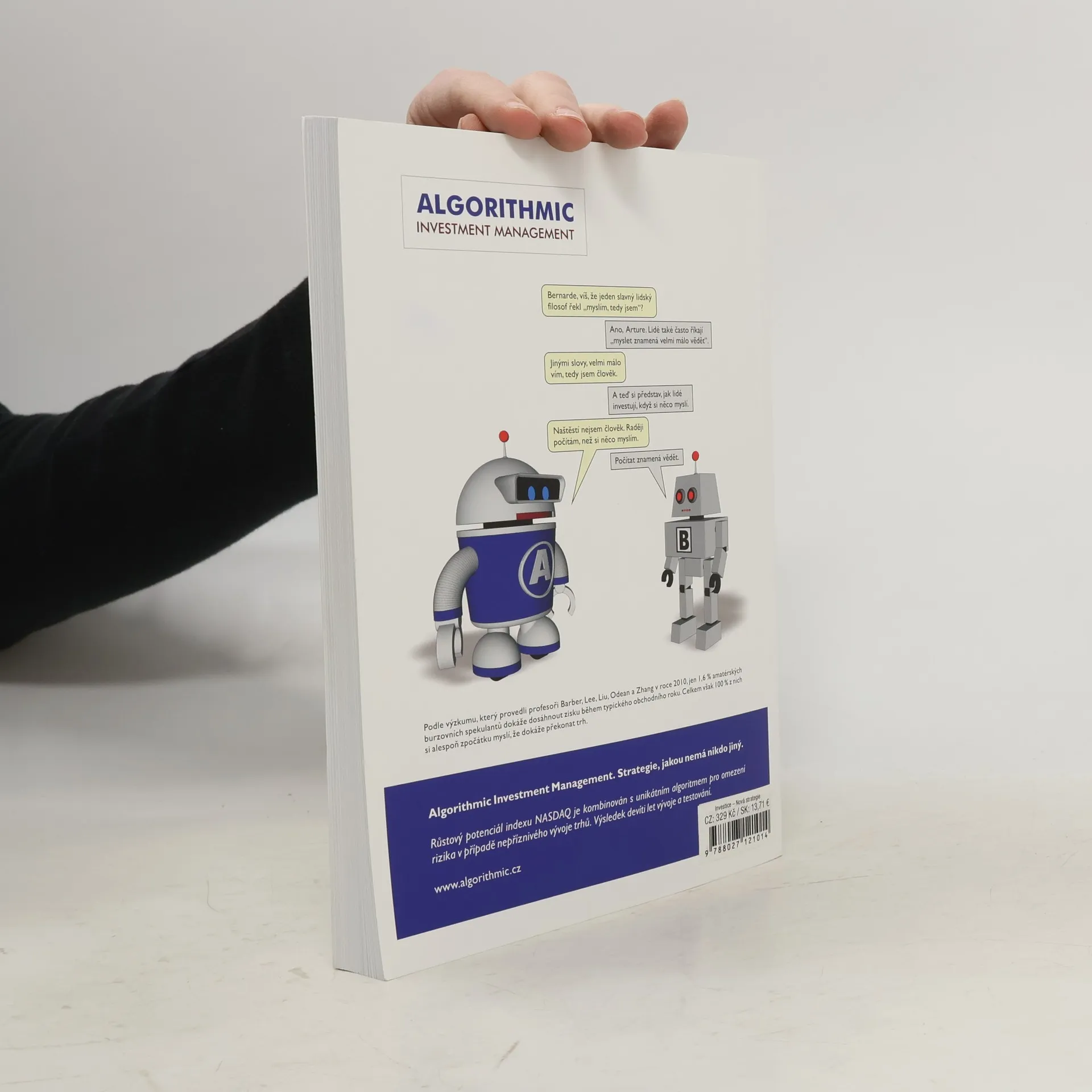 Publikace stručně a přístupně shrnuje více než 25 let autorových zkušeností na kapitálových trzích. Srozumitelnosti pomáhá bohatá grafická příloha. Nevyžaduje žádné zvláštní znalosti matematiky, makroekonomie nebo účetnictví. Autor věnuje velkou pozornost obvyklým chybám začínajících i pokročilých investorů, rovněž i různým druhům rizik. Zabývá se ekonomickými a politickými faktory, které ovlivňují výnosnost trhů akcií a pevně úročených cenných papírů. Podstatnou část obsahu tvoří kapitoly věnované algoritmickému investování. V této části knihy je popsáno, jaké přístupy fungují, jaké nefungují a proč. Dozvíte se o limitech umělé inteligence a o výhodách disciplinovaného investičního přístupu. Část kapitoly je věnována i práci se softwarovým produktem Robot Investment Calculator.