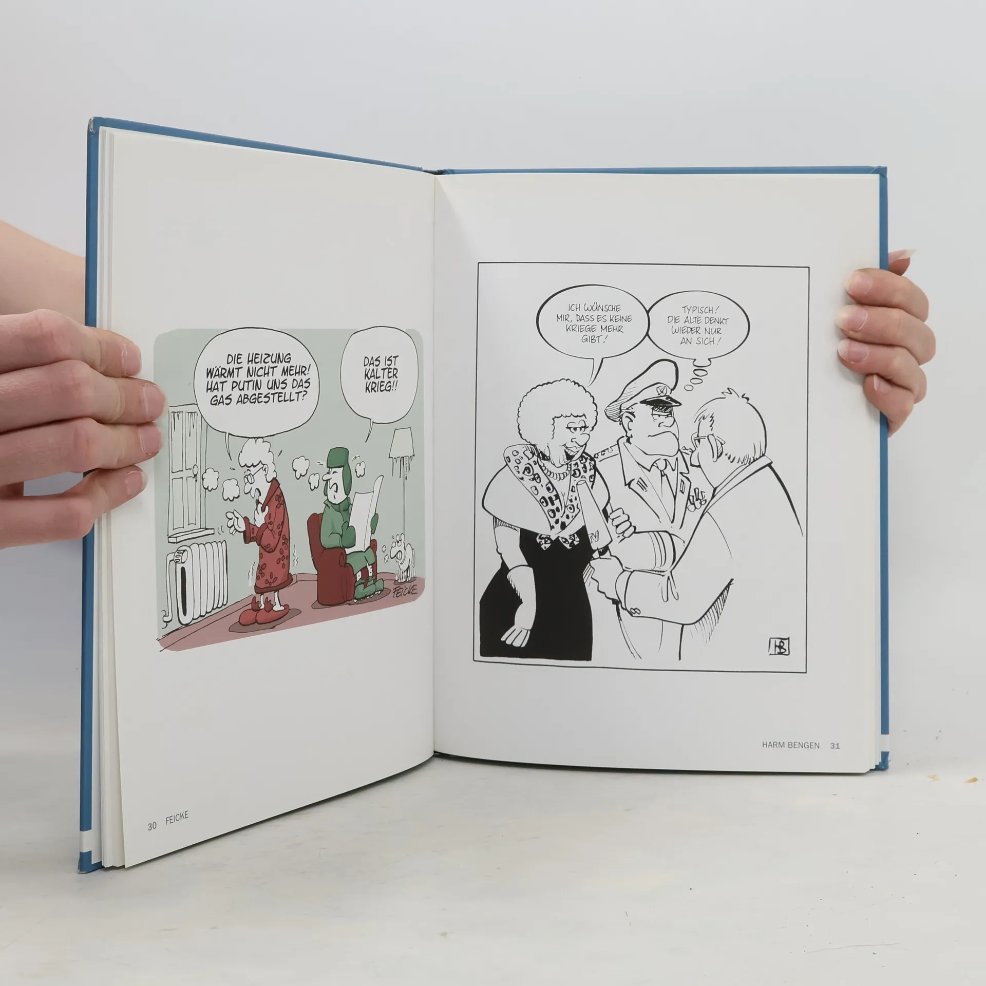 70 Jahre Frieden und dann dauernd dieser Krieg! 27 Zeichner haben die Patronen gefüllt, ihre Stifte entsichert und sind in den Kampf gegen das weiße Blatt gezogen. Denn es ist höchste Zeit, endlich sämtliche Fragen rund um das Thema „Krieg“ – immerhin die Lieblingsbeschäftigung des Menschen - zu beantworten: Wer gewinnt eigentlich eine Tortenschlacht? Was passiert mit fahnenflüchtigen Zinnsoldaten? Stimmt es, dass das Friedenslicht aus den Nachrichten kommt? Was tun, wenn Cartoonisten durch Deadlines radikalisiert werden? Warum treffen Bomben immer genau die Bösen? Und wie sieht überhaupt ein künstlerisch wertvoller Terrorakt aus? Mit erbarmungslosen Bildern von Ari Plikat, Bruno Haberzettl, Daniel Jokesch, Dorthe Landschulz, Elisabeth Semrad, Harm Bengen, HUSE, Miriam Wurster, Oliver Ottitsch, Schilling & Blum, Stephan Rürup, Til Mette und vielen mehr. Bauchschuss inklusive.