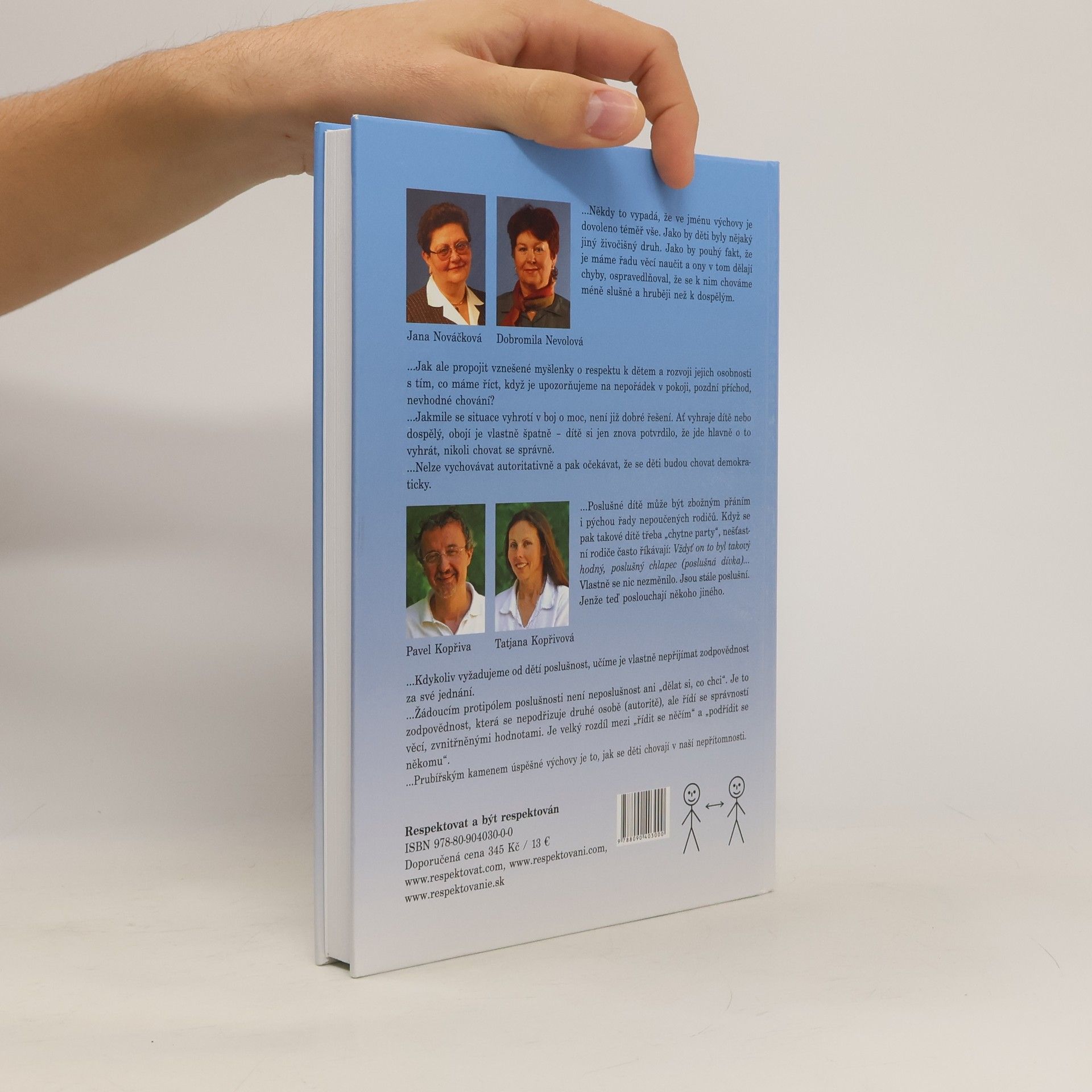 Výchova dětí založená na uplatňování moci a síly je vyčerpávající a přitom málo účinná. Má negativní dopady nejen na plnění každodenních oprávněných požadavků, ale také na sebeúctu, rozvoj osobnosti a vzájemné vztahy všech zúčastněných stran. Totéž platí i pro komunikaci dospělých mezi sebou, kdykoliv v ní převládne vzájemný boj o moc. Kniha Respektovat a být respektován je určena všem, kteří se snaží o partnerský, respektující přístup ve výchově, vzdělávání a v mezilidských vztazích. Nabízí jednak postupy a dovednosti okamžitě využitelné v praxi, jednak pohled na širší souvislosti mocenského a respektujícího pojetí výchovy, vzdělávání a komunikace. Je využitelná nejen pro rodiče a učitele, ale pro všechny, kteří chtějí investovat úsilí do rozšíření repertoáru svých komunikačních dovedností pro zvládání běžných i náročných životních situací. Přirozeným důsledkem osvojení těchto postupů a dovedností je udržení vlivu i dobrých vztahů a vzrůstající pocit vnitřního klidu, sebeúcty a kompetentnosti. Autoři jsou známí jako lektoři stejnojmenného kurzu, který je již řadu let organizován po celé ČR.