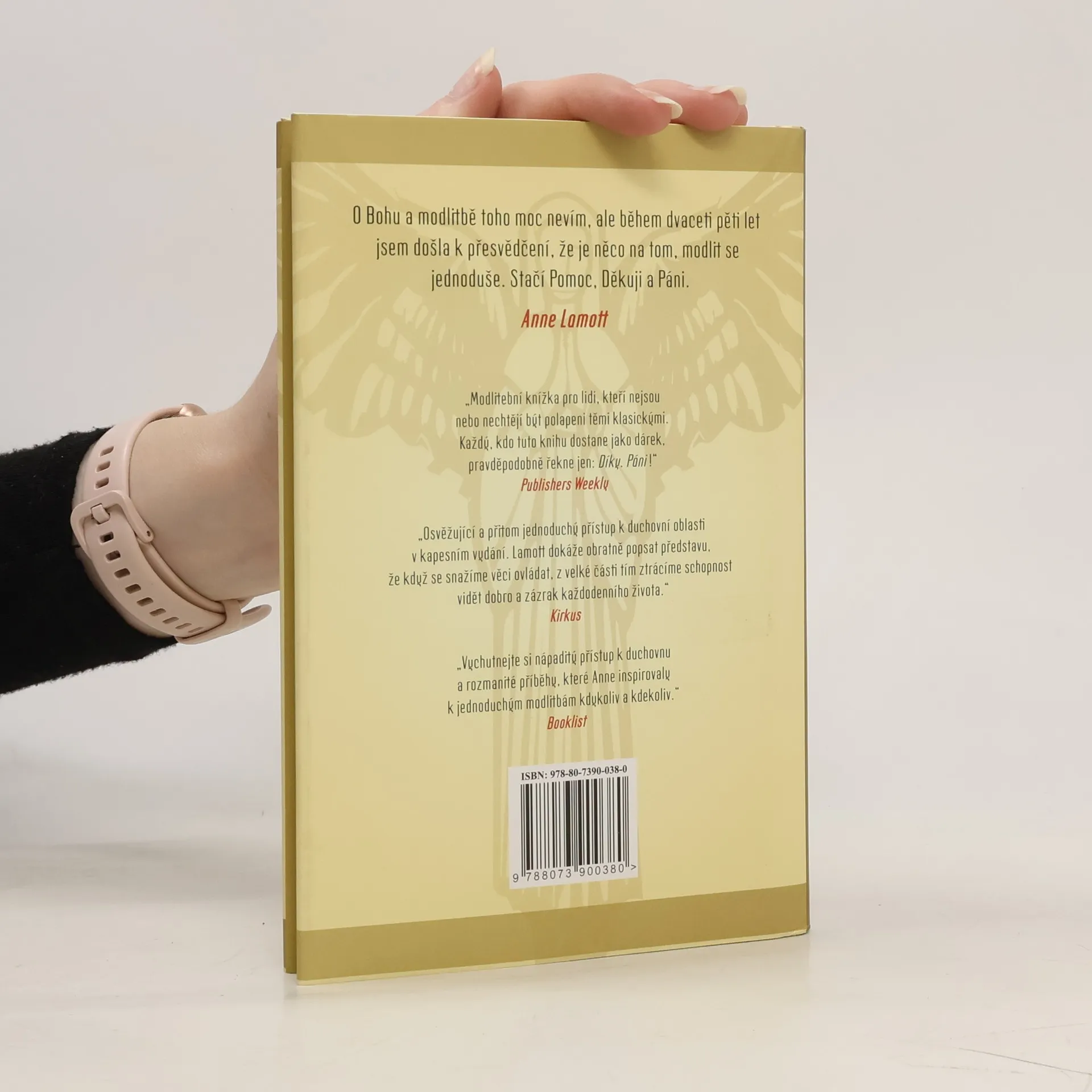 Tři základní modlitby nezbytné pro překonání zlých časů, těžkých dnů a starostí každodenního života. Autorka Anne Lamott vtipně a vnímavě píše o své vlastní víře a desetiletích pokusů a omylů. Právě tyto tři modlitby – žádost o pomoc vyšší moci – ocenění toho, co máme – a pocit úžasu nad světem kolem nás – nám může pomoci překonat obtíže a ukázat cestu vpřed. V této knize autorka líčí, jak tyto tři modlitby objevila, vysvětluje, co znamenají a jak jí pomohly, a zkoumá, jak byly nápomocny jiným lidem. O Bohu a modlitbě toho moc nevím, ale během dvaceti pěti let jsem došla k přesvědčení, že je něco na tom, modlit se jednoduše. Stačí Pomoc, Děkuji a Páni.