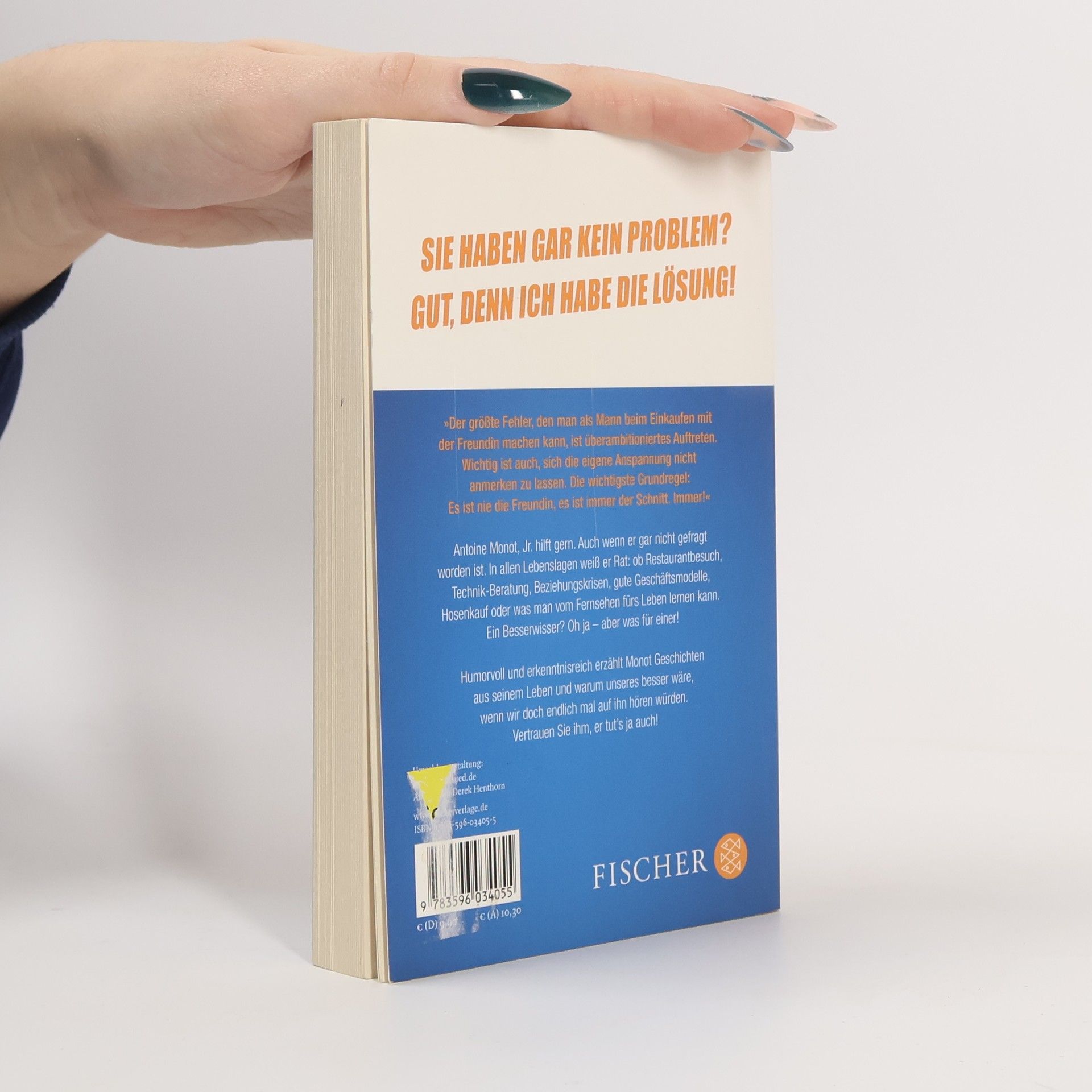 Sie haben gar kein Problem? Gut, denn ich habe die Lösung! »Der größte Fehler, den man als Mann beim Einkaufen mit der Freundin machen kann, ist überambitioniertes Auftreten. Wichtig ist auch, sich die eigene Anspannung nicht anmerken zu lassen. Die wichtigste Grundregel: Es ist nie die Freundin, es ist immer der Schnitt. Immer!« Antoine Monot, Jr. hilft gern. Auch wenn er gar nicht gefragt worden ist. In allen Lebenslagen weiß er Rat: ob Restaurantbesuch, Technik-Beratung, Beziehungskrisen, gute Geschäftsmodelle, Hosenkauf oder was man vom Fernsehen fürs Leben lernen kann. Ein Besserwisser? Oh ja – aber was für einer! Humorvoll und erkenntnisreich erzählt Antoine Monot alias »Tech-Nick« Geschichten aus seinem Leben und warum unseres besser wäre, wenn wir doch endlich mal auf ihn hören würden. Vertrauen Sie ihm, er tut’s ja auch!