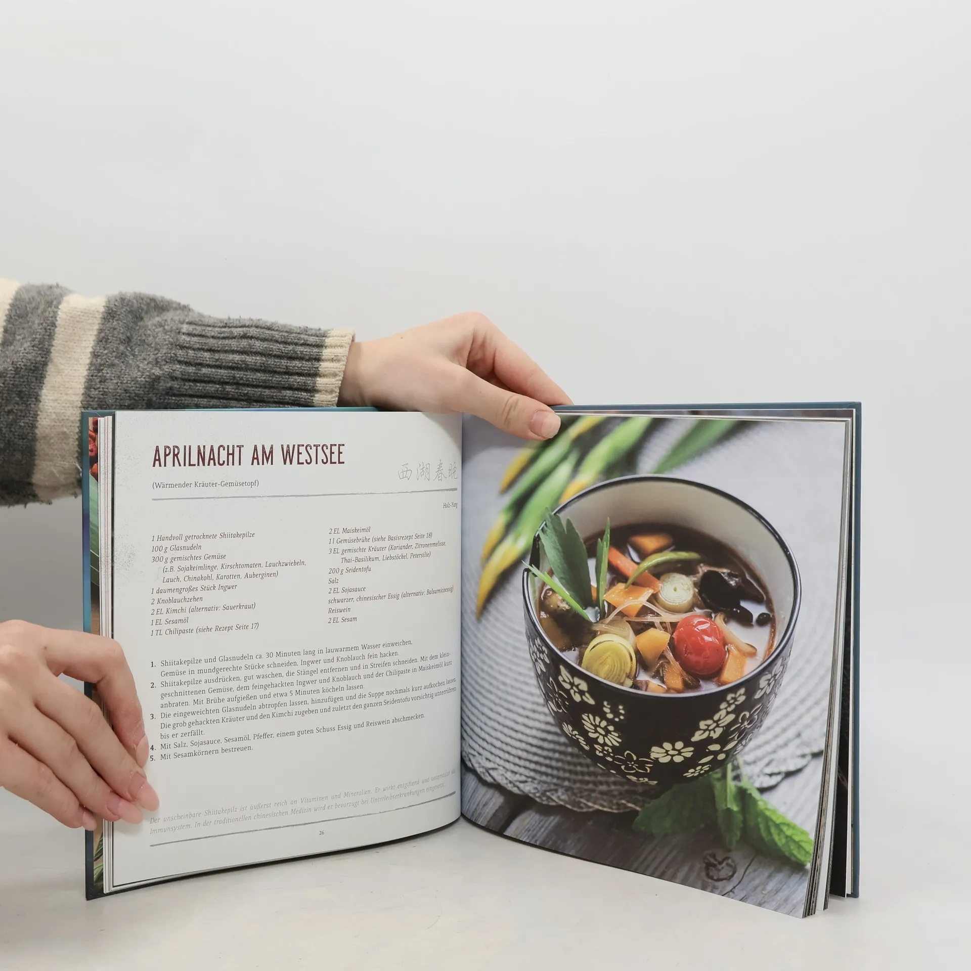 Ob als sättigender Abschluss eines Festmahls oder morgens zum Frühstück: Suppen sind aus der chinesischen Küche nicht wegzudenken. Sie schmecken nicht nur, sondern sind auch gut für Gesundheit und Wohlbefinden! Das Buch vereint die besten Rezepte aus der authentisch chinesischen Suppenküche - von klaren Kraftbrühen bis hin zu kräftigen Reis- und Getreidesuppen. Darüber hinaus bietet es einen Überblick über die chinesische Ernährungslehre, stellt die wichtigsten Zutaten der chinesischen Küche vor und listet tabellarisch die thermischen Eigenschaften der einzelnen Zutaten gemäß der daoistischen Fünf-Elemente-Lehre auf.