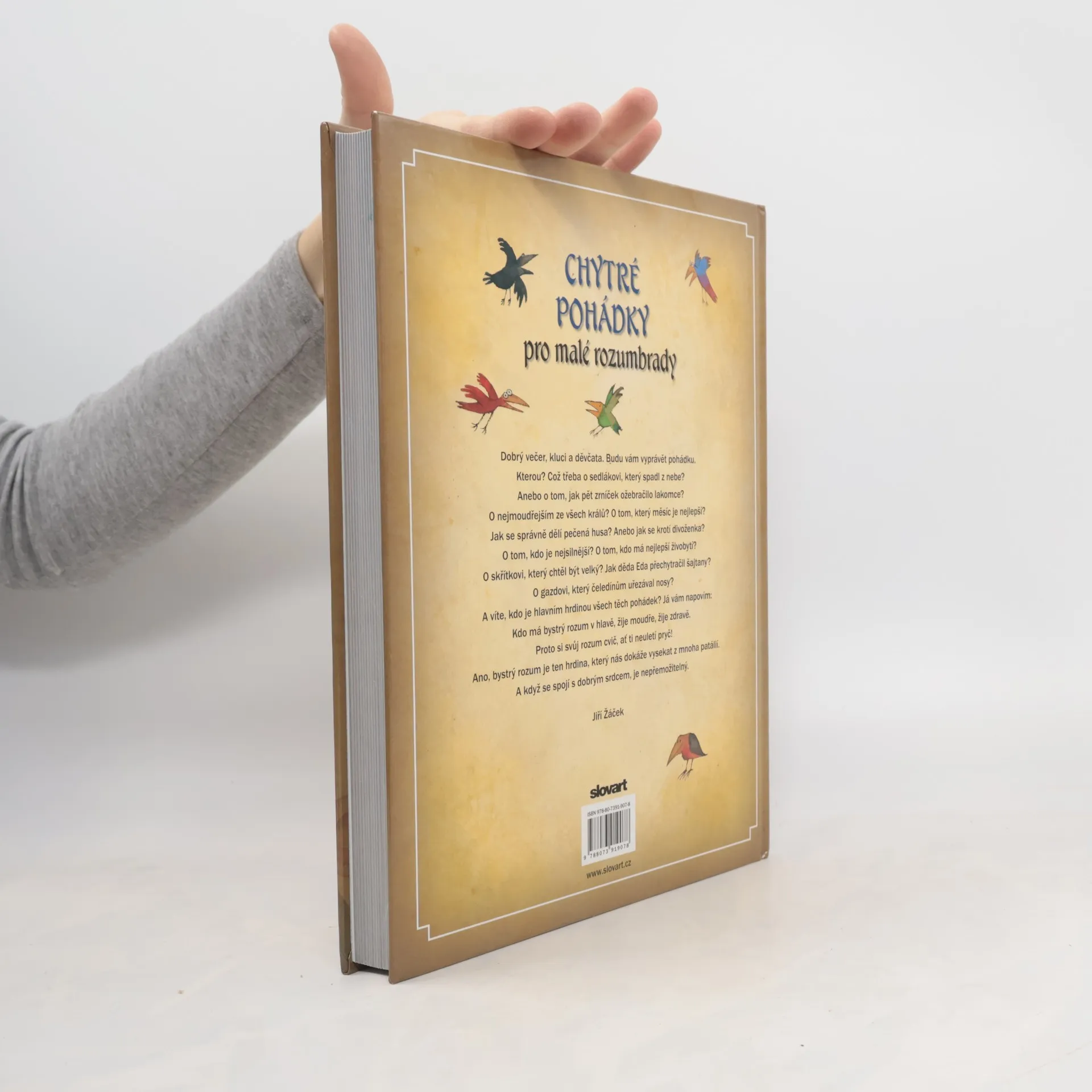 Kromě fantastických pohádek, kde se to hemží nadpřirozenými bytostmi a čaruje se ostošest, existují i pohádky, ve kterých se nevyskytují pohádkové obludy, kde nevítězí mocné kouzlo či hrubá síla, ale navrch má rozum, moudrost a vtip. Hrdiny chytrých pohádek bývají lidé zdánlivě obyčejní, kteří se v životních zkouškách téměř vždy osvědčí jako lidé naopak neobyčejní, moudří a stateční. Posilují naše sebevědomí a připomínají nám, že k vítězství nad lží a nelidskostí nepotřebujeme čaromocný meč ani pohádkového dědečka, stačí mít kuráž, bystrý rozum a dobré srdce. Není to sympatický vzkaz dávných pohádkářů dnešním rozumbradům a rozumbradkám? Kniha chytrých pohádek plných humorných situací a vtipných nápadů je třetí ze série velkých pohádkových sbírek v převyprávění Jiřího Žáčka a s ilustracemi Adolfa Borna.