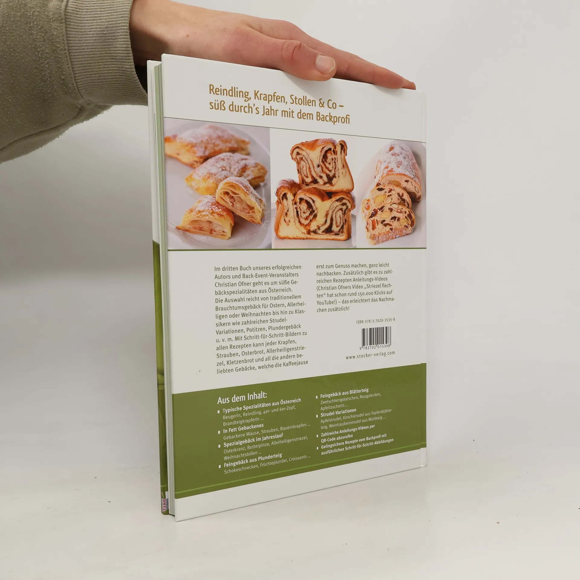 Krapfen, Osterbrot, Mohnpotize, Weihnachtsstollen & Co: Bäuerliches Brauchtumsgebäck und traditionelle süße Backwaren aus Österreich können mit Christian Ofners hilfreichen Schritt-für-Schritt-Bildern sowie vielen Anleitungsvideos (per QR-Code abzurufen) ganz leicht selbst gemacht werden. Die Rezepte spannen den Bogen von Butterpinze und gebackenen Osterhasen über Apfelstrudel, Topfenstollen und Kärntner Reindling bis zu Kletzenbrot, Strauben und gebackenen Mäusen …