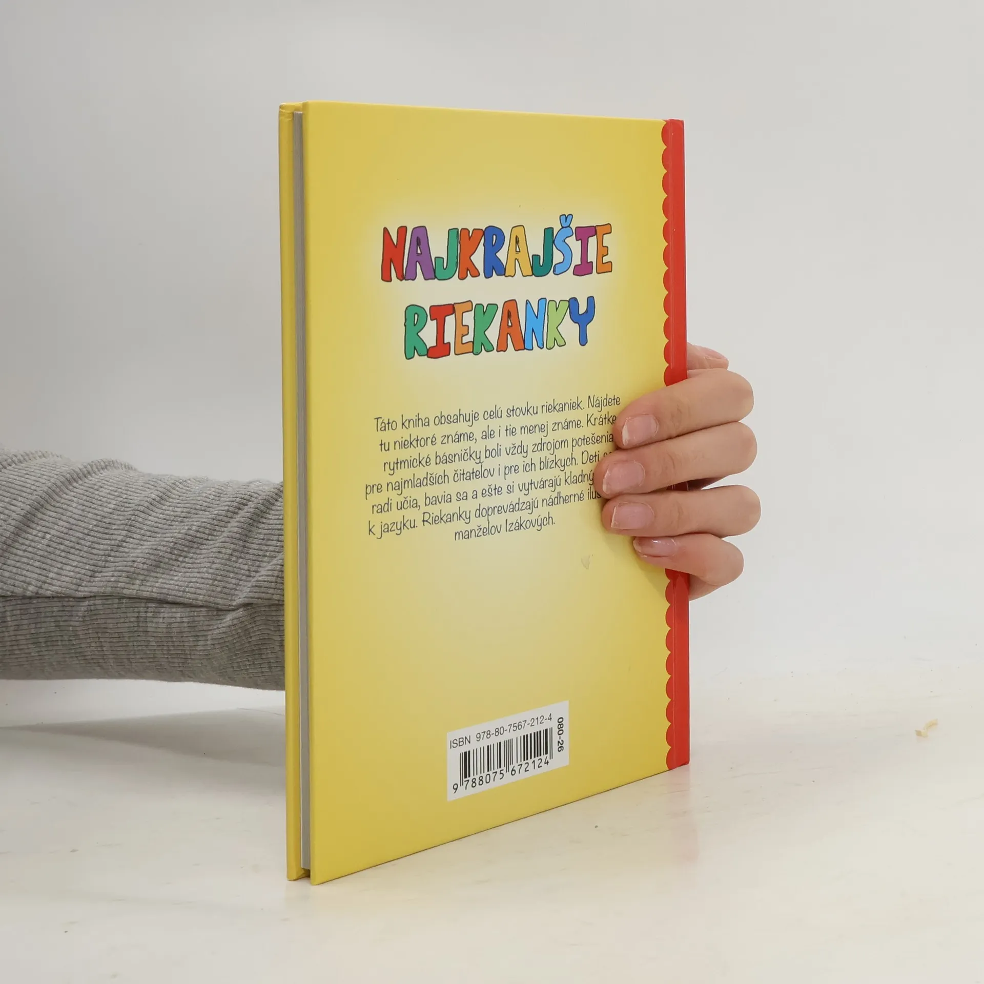 V tejto krásnej zbierke nájdete presne sto krásnych slovenských porekadiel, medzi nimi je napríklad Atlatika šarvatika, Čistím zúbky, rezy, rezy, Dupkal chrobák po pažiti, Guli, guli, gulička, Naša mačka strakatá, Skáče havko, Skáče žaba po blate, Šijem, šijem topánky, Tancovala líška, Tidli-tidli na husličky a mnohé ďalšie všeobecne známe. Riekanky sa môžete učiť so svojimi najmenšími a prezerať si pestré obrázky.