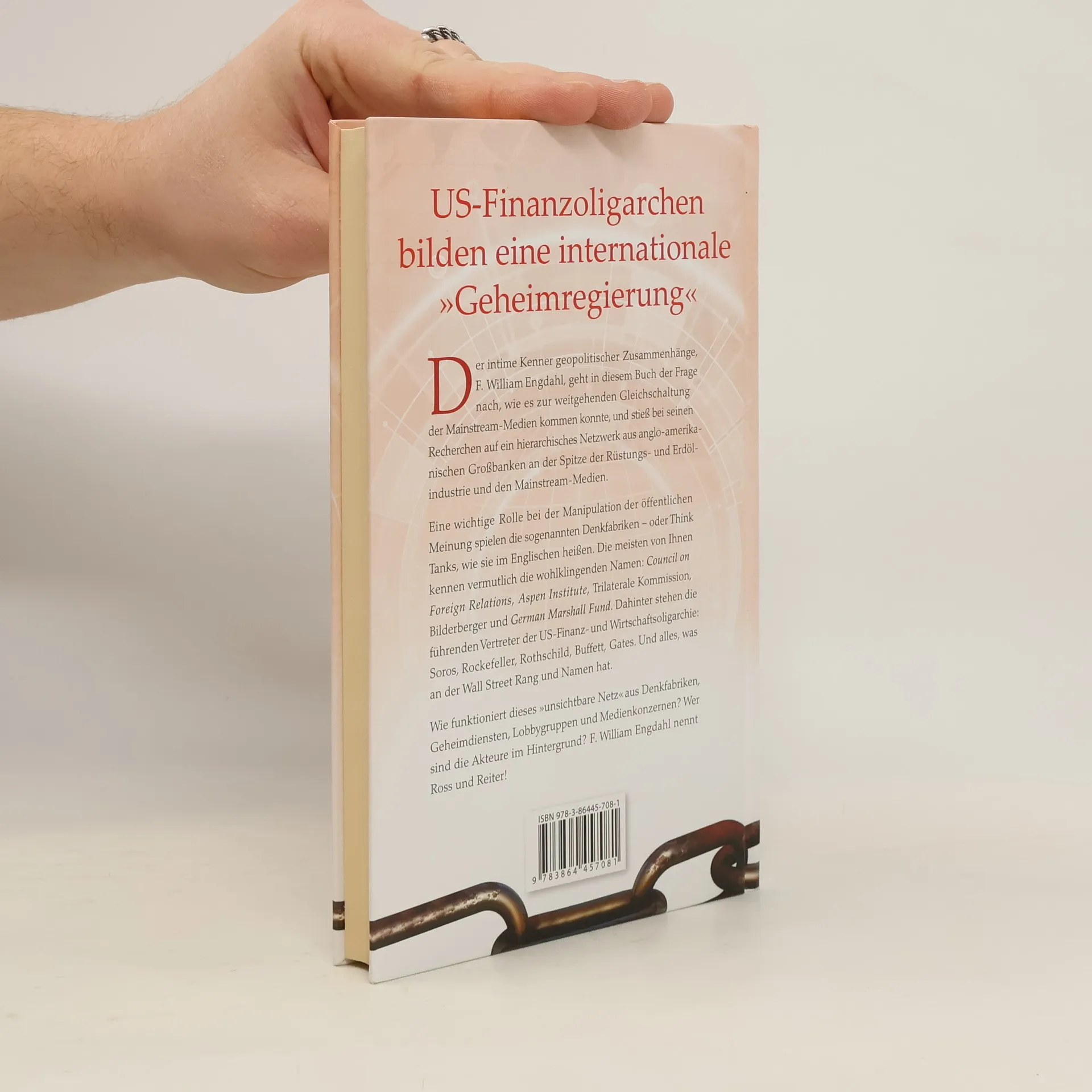 US-Finanzoligarchen bilden eine internationale »Geheimregierung«. F. William Engdahl untersucht, wie die Gleichschaltung der Mainstream-Medien zustande kam und entdeckt ein hierarchisches Netzwerk aus anglo-amerikanischen Großbanken, der Rüstungs- und Erdölindustrie sowie den Mainstream-Medien. Denkfabriken, auch Think Tanks genannt, spielen eine zentrale Rolle in der Manipulation der öffentlichen Meinung. Bekannte Namen wie der Council on Foreign Relations, das Aspen Institute und die Trilaterale Kommission stehen hinter führenden Vertretern der US-Finanz- und Wirtschaftselite wie Soros, Rockefeller und Rothschild. Engdahl beleuchtet, wie dieses »unsichtbare Netz« aus Denkfabriken, Geheimdiensten, Lobbygruppen und Medienkonzernen funktioniert und wer die Akteure im Hintergrund sind. Zudem thematisiert er die Rolle von NATO, Europäischer Kommission, UNO und Internationalem Währungsfonds, die undemokratische Abkommen wie TTIP ermöglichen und deren Einfluss auf die Politik enorm ist. Die Elite betrachtet die Bevölkerung als zu uninformiert, um politische Entscheidungen zu treffen. Edward Bernays, ein Pionier der Public Relations, beschrieb bereits 1928 die Manipulation der Massen als ein wichtiges Element in demokratischen Gesellschaften. Engdahl zielt darauf ab, die versteckten Absichten dieser »Geheimregierung« offenzulegen und zeigt anhand zahlreicher Beispiele, wie die Propagandamaschine funktioniert und die Öffentlichkeit d
