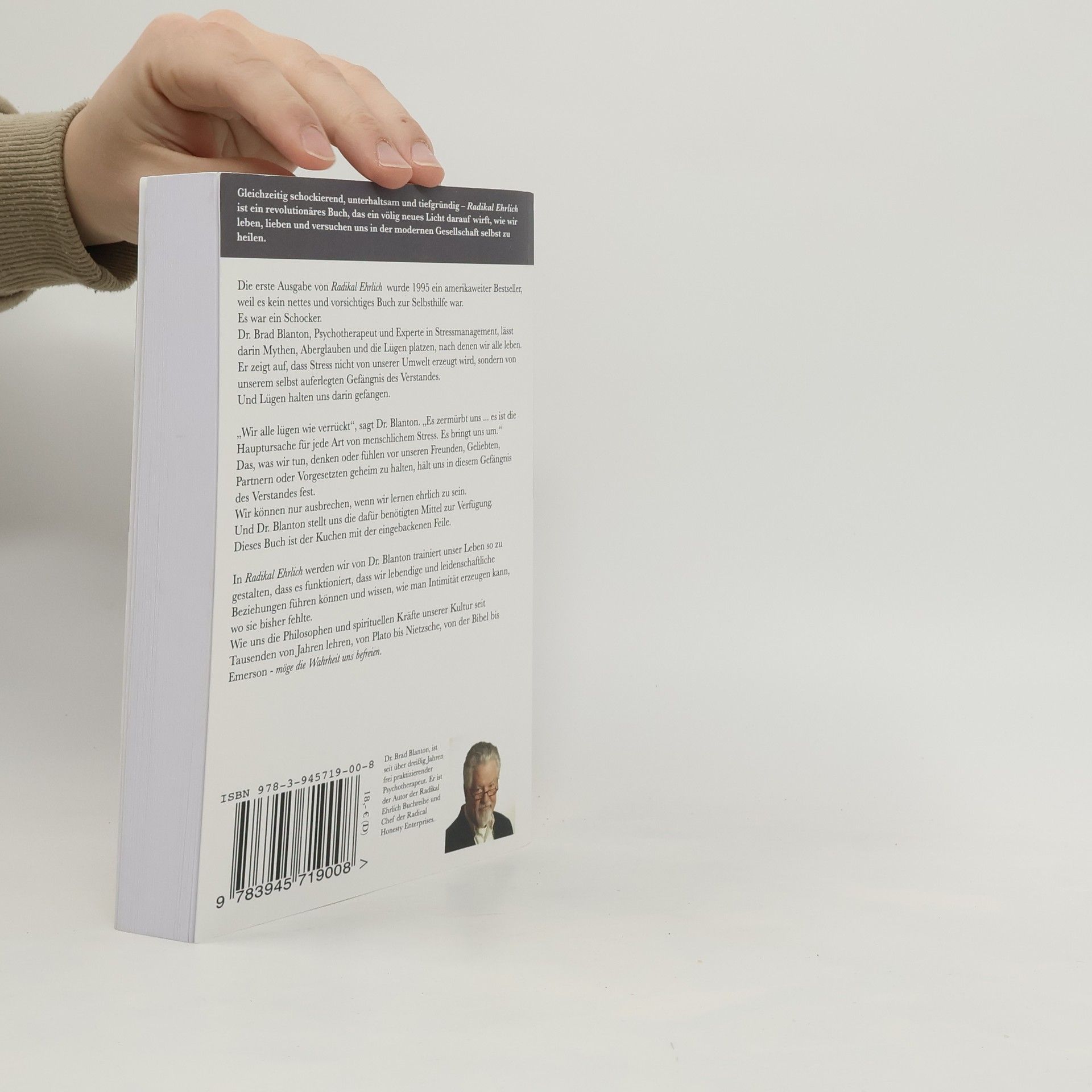 Die erste Ausgabe von Radikal Ehrlich wurde 1995 ein internationaler Bestseller, weil es kein weiteres nettes Selbsthilfe-Buch war, sondern ein Schocker. Brad Blanton, Psychotherapeut und Stress-Management-Experte, untersucht die Mythen, Aberglauben und Lügen, die unser Leben bestimmen. In dieser Neuauflage zeigt er, dass Stress nicht von unserer Umgebung kommt, sondern aus dem selbst geschaffenen Gefängnis unseres Verstandes, in dem uns das Lügen gefangen hält. „Wir alle lügen wie verrückt“, sagt Dr. Blanton. Diese Lügen zehren uns aus und sind die Hauptursache für menschlichen Stress. Das Verschweigen von Gedanken und Gefühlen gegenüber Partnern, Freunden oder Chefs hält uns in diesem mentalen Gefängnis gefangen. Der Ausweg besteht darin, die Wahrheit zu sagen. Dr. Blanton bietet uns die nötigen Werkzeuge zur Flucht aus diesem Gefängnis. Er lehrt, wie wir ein funktionierendes Leben und leidenschaftliche, lebendige Partnerschaften führen können und Intimität schaffen, wo zuvor keine war. Inspiriert von philosophischen und spirituellen Quellen unserer Kultur, von Plato bis Nietzsche, von der Bibel bis Emerson, erinnert er uns daran: Möge die Wahrheit dich frei machen.