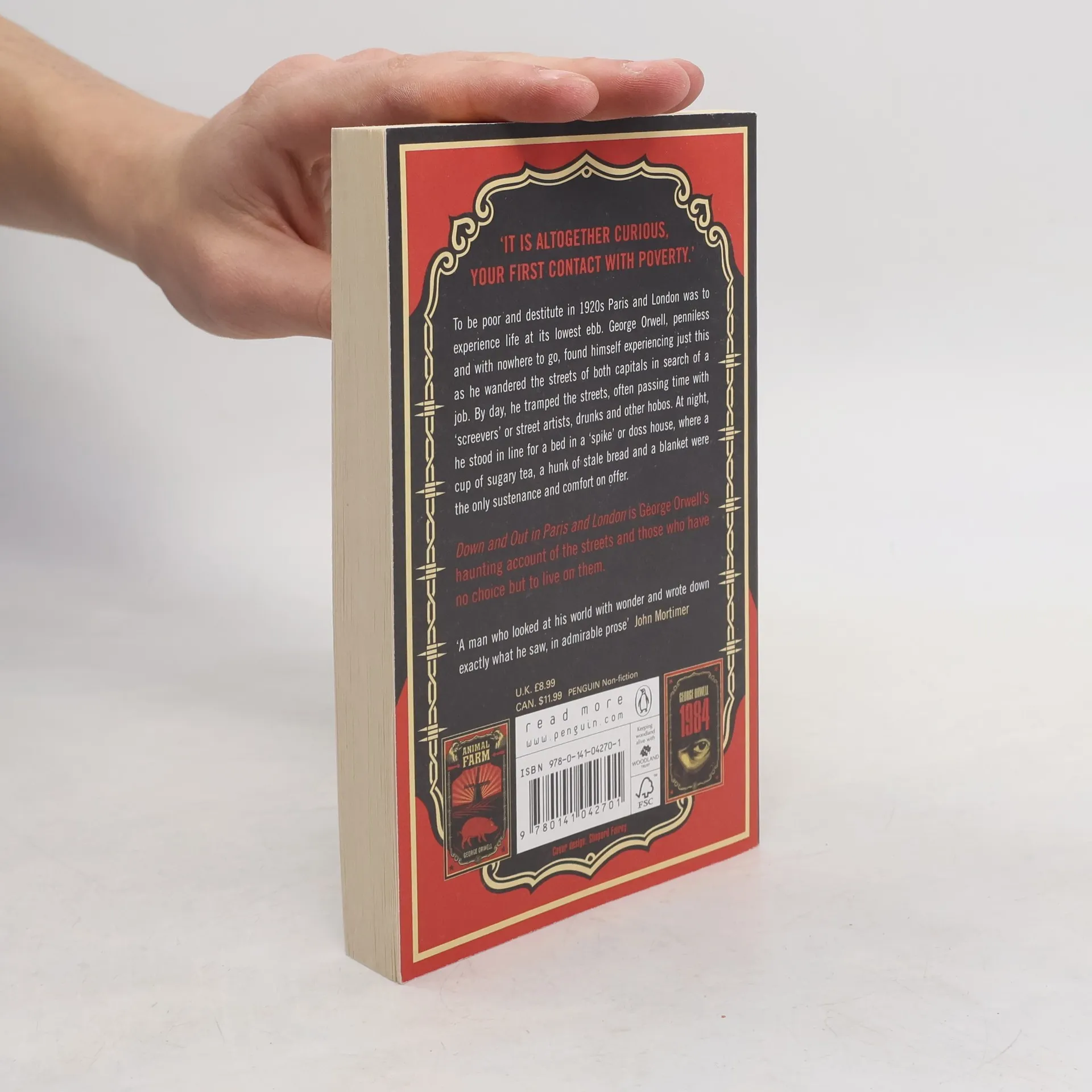 The perfect edition for any Orwell enthusiasts' collection, discover Orwell's personal account of life on the streets beautifully reimagined by renowned street artist Shepard Fairey To be poor and destitute in 1920s Paris and London was to experience life at its lowest ebb. George Orwell, penniless and with nowhere to go, found himself experiencing just this as he wandered the streets of both capitals in search of a job. By day, he tramped the streets, often passing time with 'screevers' or street artists, drunks and other hobos. At night, he stood in line for a bed in a 'spike' or doss house, where a cup of sugary tea, a hunk of stale bread and a blanket were the only sustenance and comfort on offer. First published in 1933, Down and Out in Paris and London is George Orwell's haunting account of the streets and those who have no choice but to live on them. 'A man who looked at his world with wonder and wrote down exactly what he saw, in admirable prose' John Mortimer COMPLETE THE TRIO WITH SHEPARD FAIREY'S NEW-LOOK 1984 AND ANIMAL FARM.