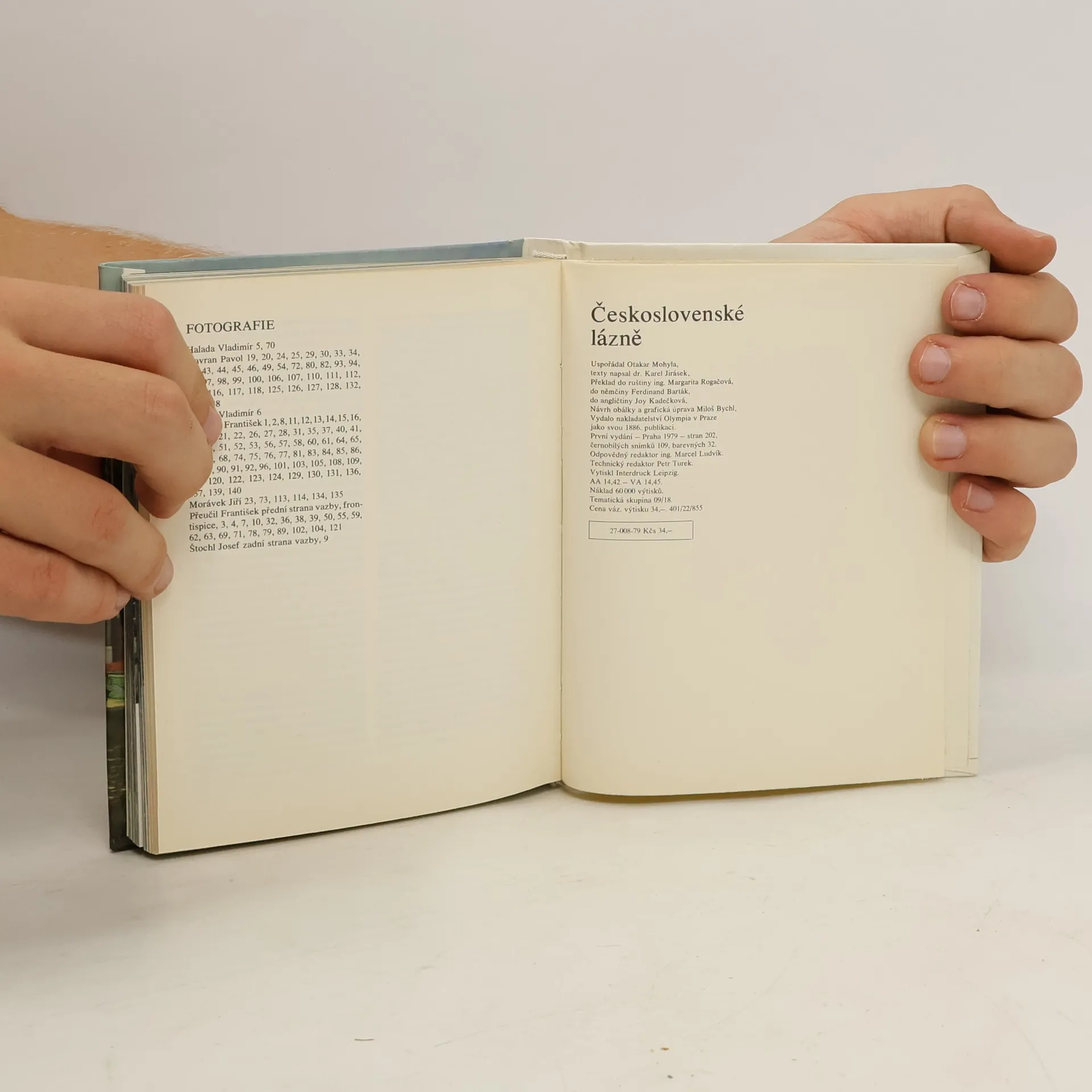 Černobílé (109) a barevné (32) snímky československých lázní. Stručné informace napsal dr. Karel Jirásek. Jsou také přeložené do angličtiny (Joy Kadlečková), němčiny (Ferdinand Barták) a ruštiny (ing. Margarita Rogačová). 1. vydání