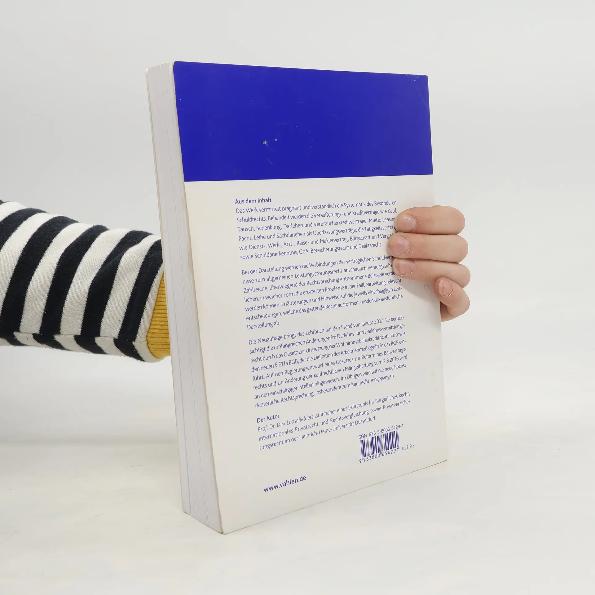Das Werk vermittelt prägnant die Systematik des Besonderen Schuldrechts und behandelt Veräußerungs- und Kreditverträge wie Kauf, Tausch, Schenkung, Darlehen, Verbraucherkreditverträge, Miete, Leasing, Pacht, Leihe und Sachdarlehen als Überlassungsverträge. Zudem werden Tätigkeitsverträge wie Dienst-, Werk-, Arzt-, Reise- und Maklervertrag, Bürgschaft, Vergleich, Schuldanerkenntnis, GoA, Bereicherungsrecht und Deliktsrecht thematisiert. Die Darstellung verdeutlicht die Verbindungen der vertraglichen Schuldverhältnisse zum allgemeinen Leistungsstörungsrecht. Zahlreiche Beispiele, überwiegend aus der Rechtsprechung, zeigen die Relevanz der erörterten Probleme in der Fallbearbeitung. Erläuterungen und Hinweise auf einschlägige Leitentscheidungen runden die Darstellung ab. Die Neuauflage berücksichtigt die Änderungen im Darlehens- und Darlehensvermittlungsrecht durch das Gesetz zur Umsetzung der Wohnimmobilienkreditrichtlinie sowie den neuen § 611a BGB, der den Arbeitnehmerbegriff definiert. Zudem wird auf den Regierungsentwurf zur Reform des Bauvertragsrechts und zur Änderung der kaufrechtlichen Mängelhaftung hingewiesen. Die neue höchstrichterliche Rechtsprechung, insbesondere zum Kaufrecht, wird ebenfalls behandelt. Prof. Dr. Dirk Looschelders ist Inhaber eines Lehrstuhls für Bürgerliches Recht, Internationales Privatrecht und Rechtsvergleichung sowie Privatversicherungsrecht an der Heinrich-Heine-Universität Düsseldorf.