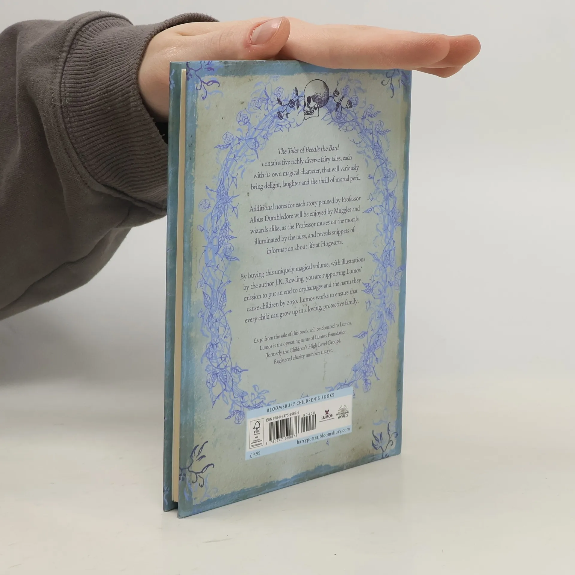 The Tales of Beedle the Bard contains five richly diverse fairy tales, each with its own magical character, that will variously bring delight, laughter and the thrill of mortal peril. Additional notes for each story penned by Professor Albus Dumbledore will be enjoyed by Muggles and wizards alike, as the Professor muses on the morals illuminated by the tales, and reveals snippets of information about life at Hogwarts. A uniquely magical volume, with illustrations by the author, J. K. Rowling, that will be treasured for years to come.