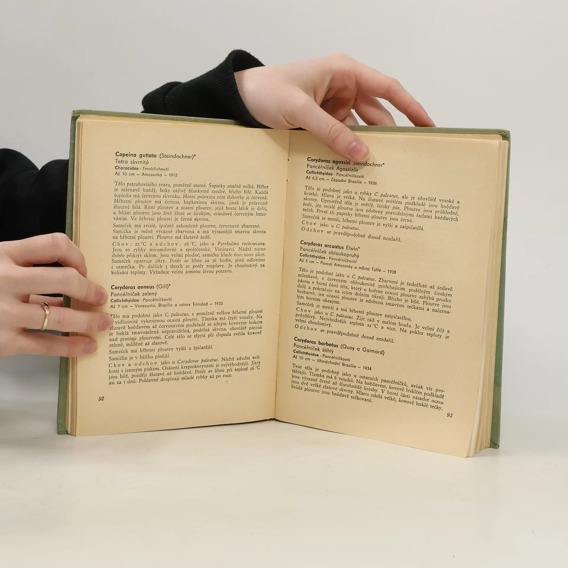 Akvaristická příručka s popisem druhů. Při popisu jednotlivých druhů akvarijních ryb uvádí autor kromě latinského a českého názvu i příslušnou čeleď, maximální velikost, místo původu, rok dovozu do Evropy, popis ryby, její chov a odchov. Publikace je uvedenavšeobecnou statí o chovu akvarijních ryb, jejich krmení apod.