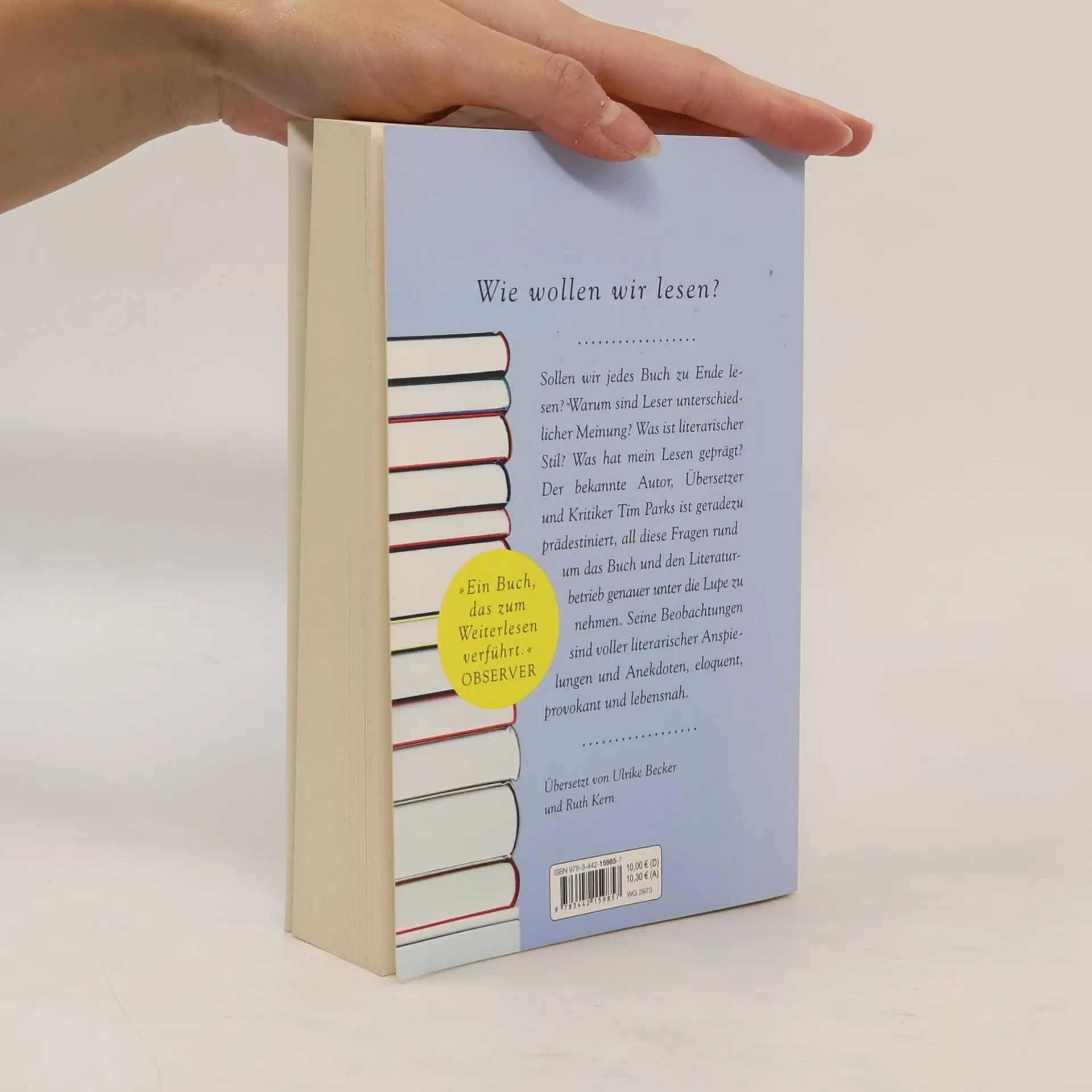 Muss man jedes Buch zu Ende lesen? Warum sind Leser unterschiedlicher Meinung? Was ist literarischer Stil? Und was bedeuten literarische Preise? Und ist Copyright wichtig? Der bekannte Autor, Übersetzer und Kritiker Tim Parks ist geradezu prädestiniert dafür, alle Fragen rund um das Buch und den Literaturbetrieb einmal genauer unter die Lupe zu nehmen. Mit Neugier und Skepsis leuchtet er aus, was Leser von Büchern wollen und welche Bedeutung Literatur heute hat. Seine Beobachtungen sind voller literarischer Anspielungen und Anekdoten, persönlich, witzig und lebensnah. Ein Buch übers Lesen, das Lust macht auf mehr.