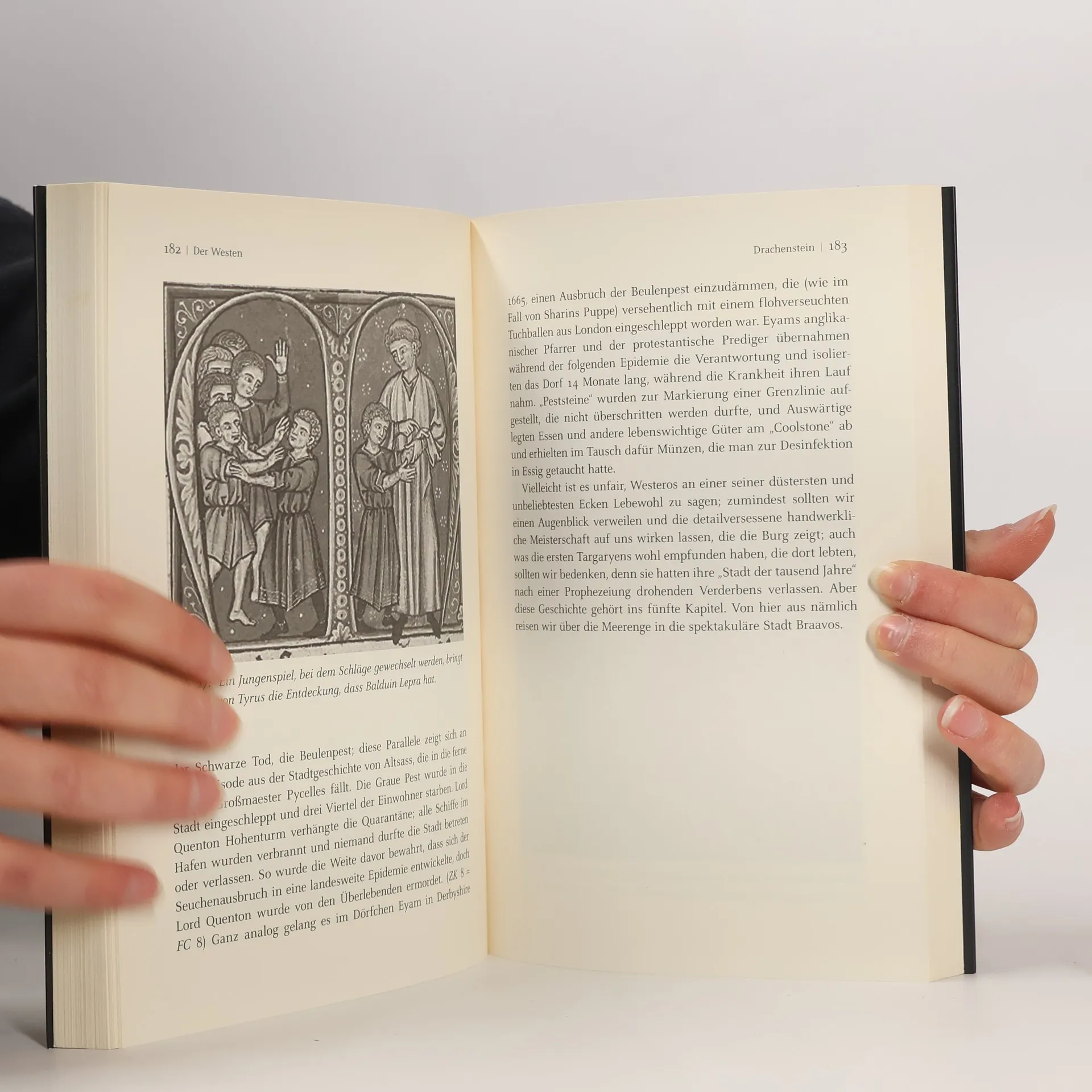 ›Game of Thrones‹ nimmt das Mittelalter als Vorbild und erschafft daraus eine eigene Welt. Die erfolgreichen Fantasyromane und die gleichnamige Serie sind Gegenstand heftiger Diskussionen in den Medien. Millionen von Fans in aller Welt entwickeln zahllose Theorien, wie die Geschichte wohl weitergehen wird. Doch trotz all dem hat bisher kein Buch verraten, wie George R. R. Martin sein erstaunliches Universum geschaffen hat. Während Carolyne Larrington Romane und Fernsehserie zugleich im Blick hält, erkundet sie jene mittelalterliche Welt aus Rivalitäten und Krieg, Liebe und Verrat, Gier und Macht, deren Inbegriff die Rosenkriege in England bilden. Außerdem vertieft sie sich unter anderem in die Themen Wappen, Riesen, Drachen und Schattenwölfe in Texten des Mittelalters. Sie betrachtet Raben, alte Götter und Wehrholz in den nordischen Mythen ebenso wie den bizarren, exotischen Orient auf dem Ostkontinent Essos. Von den Weißen Wanderern bis zur Roten Frau, von Casterlystein bis zum Zitternden Meer reicht ihr Streifzug. Das Ergebnis ist ein unentbehrlicher Reiseführer in die bedeutendste Schöpfung der Fantasyliteratur des 21. Jahrhunderts.