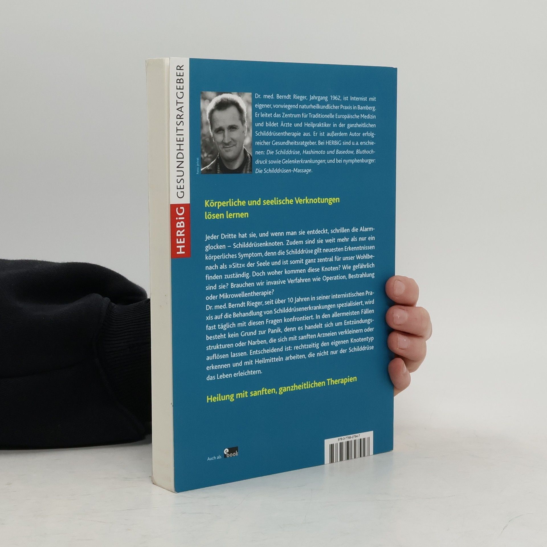 Körperliche und seelische Verknotungen lösen lernen Jeder Dritte hat sie, und wenn man sie entdeckt, schrillen die Alarmglocken – Schilddrüsenknoten. Zudem sind sie weit mehr als nur ein körperliches Symptom, denn die Schilddrüse gilt neuesten Erkenntnissen nach als „Sitz” der Seele und ist somit ganz zentral für unser Wohlbefinden zuständig. Doch woher koMMen diese Knoten? Wie gefährlich sind sie? Brauchen wir invasive Verfahren wie Operation, Bestrahlung oder Mikrowellentherapie? Dr. med. Berndt Rieger, seit über 10 Jahren in seiner internistischen Praxis auf die Behandlung von Schilddrüsenerkrankungen spezialisiert, wird fast täglich mit diesen Fragen konfrontiert. In den allermeisten Fällen besteht kein Grund zur Panik, denn es handelt sich um Entzündungsstrukturen oder Narben, die sich mit sanften Arzneien verkleinern oder auflösen lassen. Entscheidend ist: rechtzeitig den eigenen Knotentyp erkennen und mit Heilmitteln arbeiten, die nicht nur der Schilddrüse das Leben erleichtern. Heilung mit sanften, ganzheitlichen Therapien