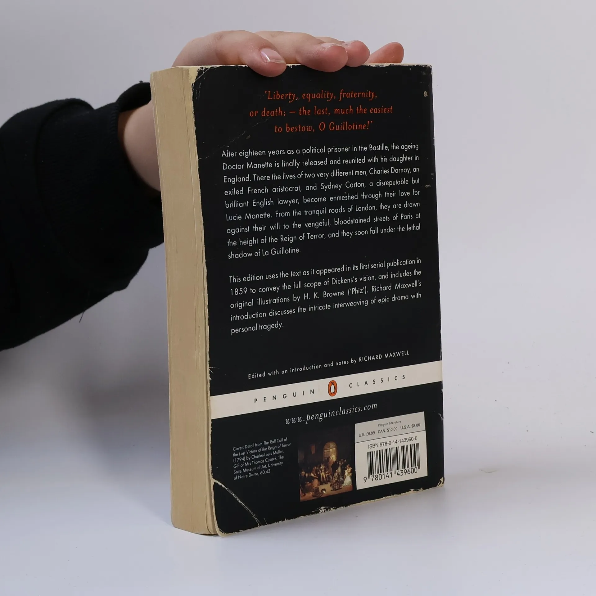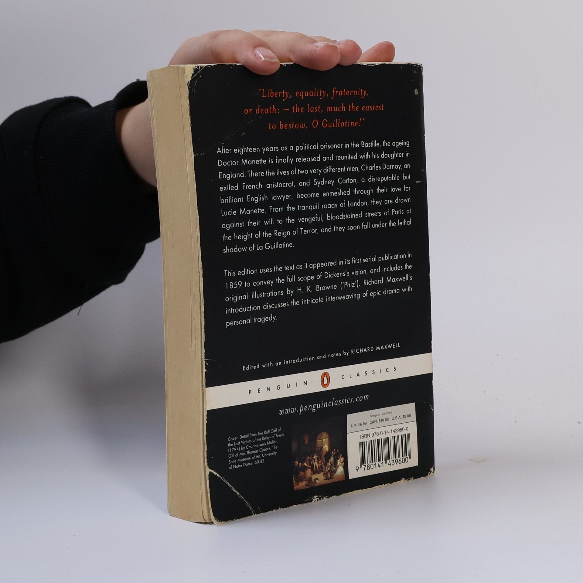 After eighteen years as a political prisoner in the Bastille the aging Dr Manette is finally released and reunited with his daughter in England. There, two very different men, Charles Darnay, an exiled French aristocrat, and Sydney Carton, a disreputable but brilliant English lawyer, become enmeshed through their love for Lucie Manette. From the tranquil lanes of London, they are all drawn against their will to the vengeful, bloodstained streets of Paris at the height of the Reign of Terror and soon fall under the lethal shadow of La Guillotine. This edition uses the text as it appeared in its first serial publication in 1859 to convey the full scope of Dickens's vision, and includes the original illustrations by H.K. Browne ('Phiz'). Richard Maxwell's introduction discusses the intricate interweaving of epic drama with personal tragedy. (back cover)