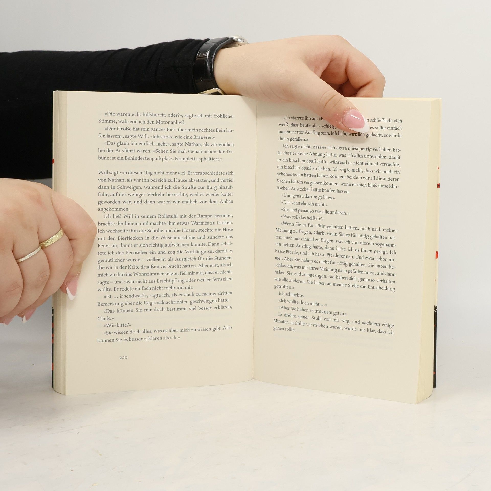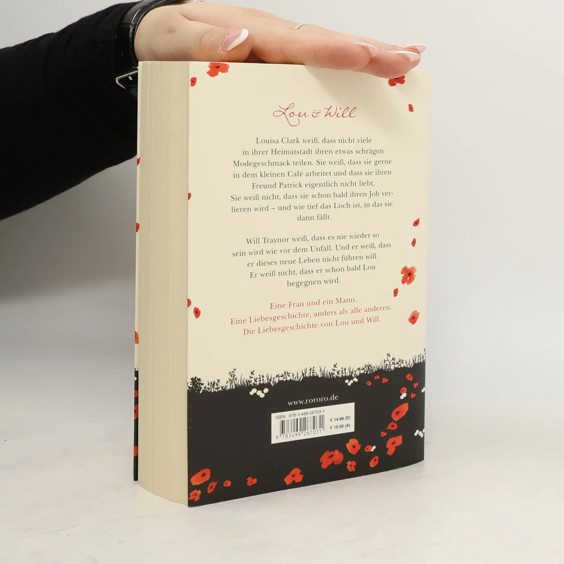 Lou & Will. Louisa Clark weiß, dass nicht viele in ihrer Heimatstadt ihren etwas schrägen Modegeschmack teilen. Sie weiß, dass sie gerne in dem kleinen Café arbeitet und dass sie ihren Freund Patrick eigentlich nicht liebt. Sie weiß nicht, dass sie schon bald ihren Job verlieren wird – und wie tief das Loch ist, in das sie dann fällt. Will Traynor weiß, dass es nie wieder so sein wird wie vor dem Unfall. Und er weiß, dass er dieses neue Leben nicht führen will. Er weiß nicht, dass er schon bald Lou begegnen wird. Eine Frau und ein Mann. Eine Liebesgeschichte, anders als alle anderen. Die Liebesgeschichte von Lou und Will.