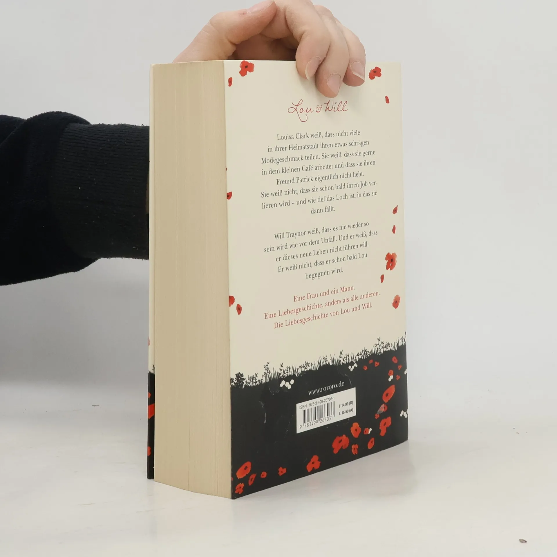 Lou & Will. Louisa Clark weiß, dass nicht viele in ihrer Heimatstadt ihren etwas schrägen Modegeschmack teilen. Sie weiß, dass sie gerne in dem kleinen Café arbeitet und dass sie ihren Freund Patrick eigentlich nicht liebt. Sie weiß nicht, dass sie schon bald ihren Job verlieren wird – und wie tief das Loch ist, in das sie dann fällt. Will Traynor weiß, dass es nie wieder so sein wird wie vor dem Unfall. Und er weiß, dass er dieses neue Leben nicht führen will. Er weiß nicht, dass er schon bald Lou begegnen wird. Eine Frau und ein Mann. Eine Liebesgeschichte, anders als alle anderen. Die Liebesgeschichte von Lou und Will.
