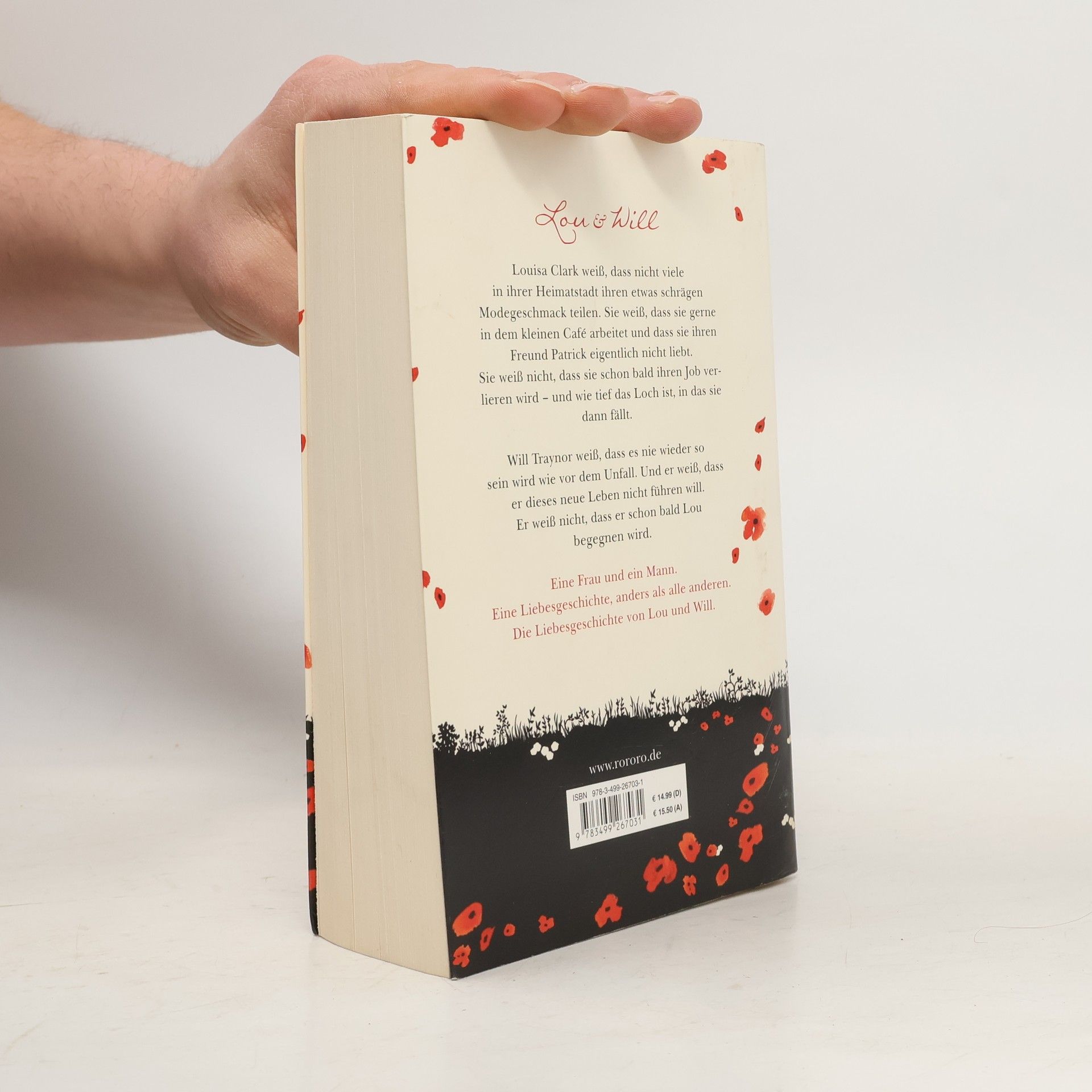 Lou & Will. Louisa Clark weiß, dass nicht viele in ihrer Heimatstadt ihren etwas schrägen Modegeschmack teilen. Sie weiß, dass sie gerne in dem kleinen Café arbeitet und dass sie ihren Freund Patrick eigentlich nicht liebt. Sie weiß nicht, dass sie schon bald ihren Job verlieren wird – und wie tief das Loch ist, in das sie dann fällt. Will Traynor weiß, dass es nie wieder so sein wird wie vor dem Unfall. Und er weiß, dass er dieses neue Leben nicht führen will. Er weiß nicht, dass er schon bald Lou begegnen wird. Eine Frau und ein Mann. Eine Liebesgeschichte, anders als alle anderen. Die Liebesgeschichte von Lou und Will.