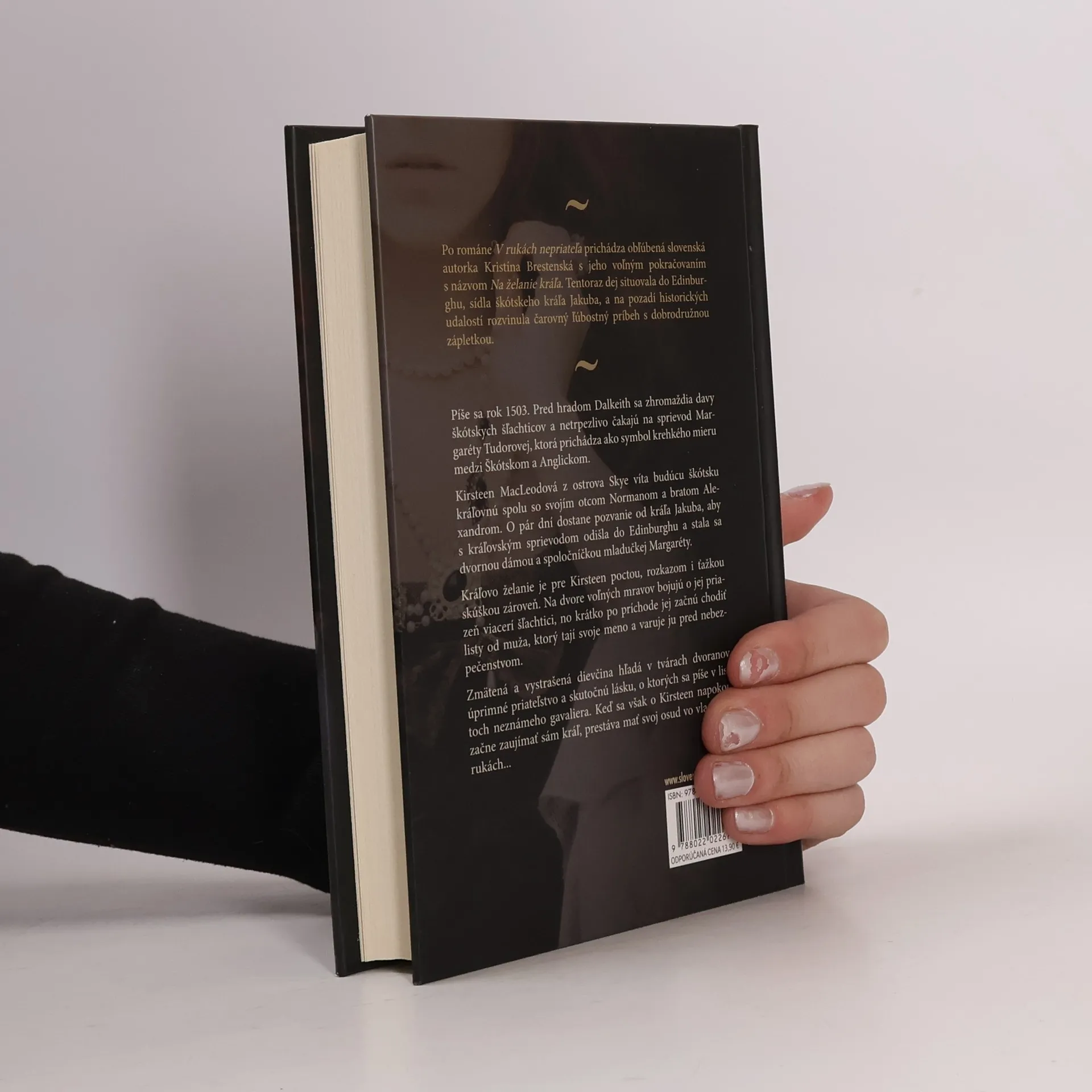 Po románe V rukách nepriateľa prichádza obľúbená slovenská autorka Kristína Brestenská s jeho voľným pokračovaním s názvom Na želanie kráľa. Tentoraz dej situovala do Edinburghu, sídla škótskeho kráľa Jakuba, a na pozadí historických udalostí rozvinula čarovný ľúbostný príbeh s dobrodružnou zápletkou. Píše sa rok 1503. Pred hradom Dalkeith sa zhromaždia davy škótskych šľachticov a netrpezlivo čakajú na sprievod Margaréty Tudorovej, ktorá prichádza ako symbol krehkého mieru medzi Škótskom a Anglickom. Kirsteen MacLeodová z ostrova Skye víta budúcu škótsku kráľovnú spolu so svojím otcom Normanom a bratom Alexandrom. O pár dní dostane pozvanie od kráľa Jakuba, aby s kráľovským sprievodom odišla do Edinburghu a stala sa dvornou dámou a spoločníčkou mladučkej Margaréty. Kráľovo želanie je pre Kirsteen poctou, rozkazom i ťažkou skúškou zároveň. Na dvore voľných mravov bojujú o jej priazeň viacerí šľachtici, no krátko po príchode jej začnú chodiť listy od muža, ktorý tají svoje meno a varuje ju pred nebezpečenstvom. Zmätená a vystrašená dievčina hľadá v tvárach dvoranov úprimné priateľstvo a skutočnú lásku, o ktorých sa píše v listoch neznámeho gavaliera. Keď sa však o Kirsteen napokon začne zaujímať sám kráľ, prestáva mať svoj osud vo vlastných rukách...