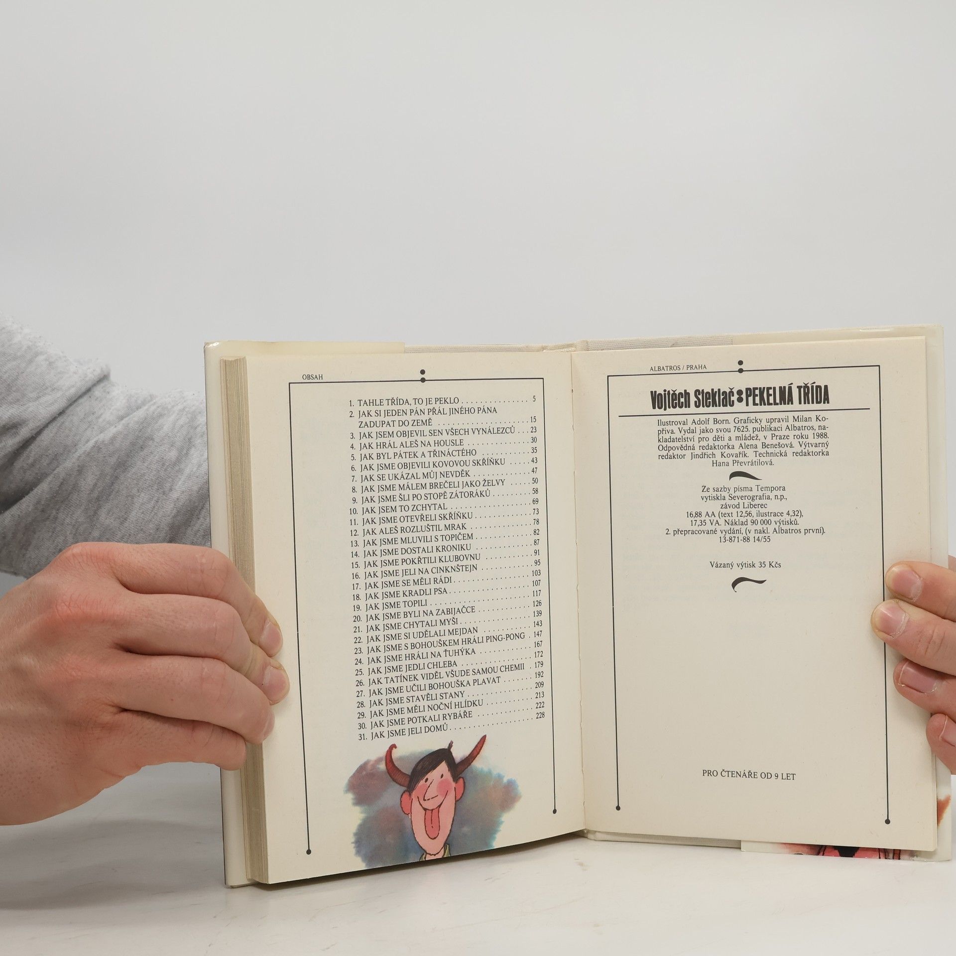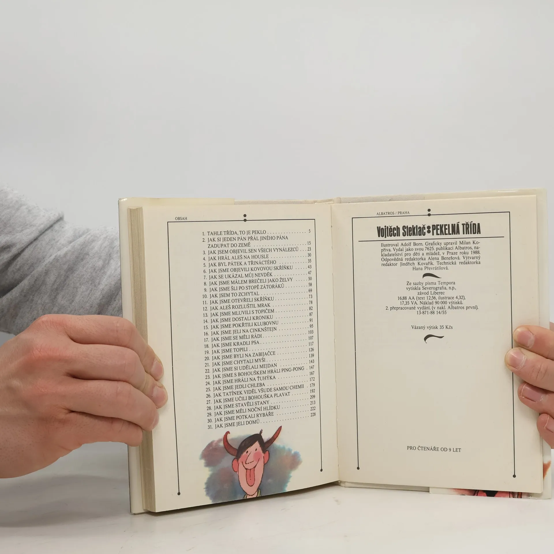 Veselé školní i mimoškolní historky oblíbené Boříkovy party z Holešovic. Osvědčené čtení plné legrace pro kluky i holky v novém, upraveném vydání. Pekelná třída - to je parta, se kterou jste se seznámili již ve třech knížkách boříkovských lapálií. Jistě si knížku rádi přečtete i kvůli půvabným barevným ilustracím Adolfa Borna. Dozvíte se v ní, jak vnímají září, jak si celý školní rok zpestřují nejrůznějšími vylomeninami, co všechno je láká ve Stromovce, jak se potýkají se Zátoráky, jak si udělali mejdan, jak se vypořádávají se šplhounem Bohouškem, jak doma válčí s rodiči. Není divu, že jejich nebohá paní třídní učitelka, něžně přezdívaná Drábinka, se často chytá za hlavu a volá: "Tahle třída, to je peklo!"