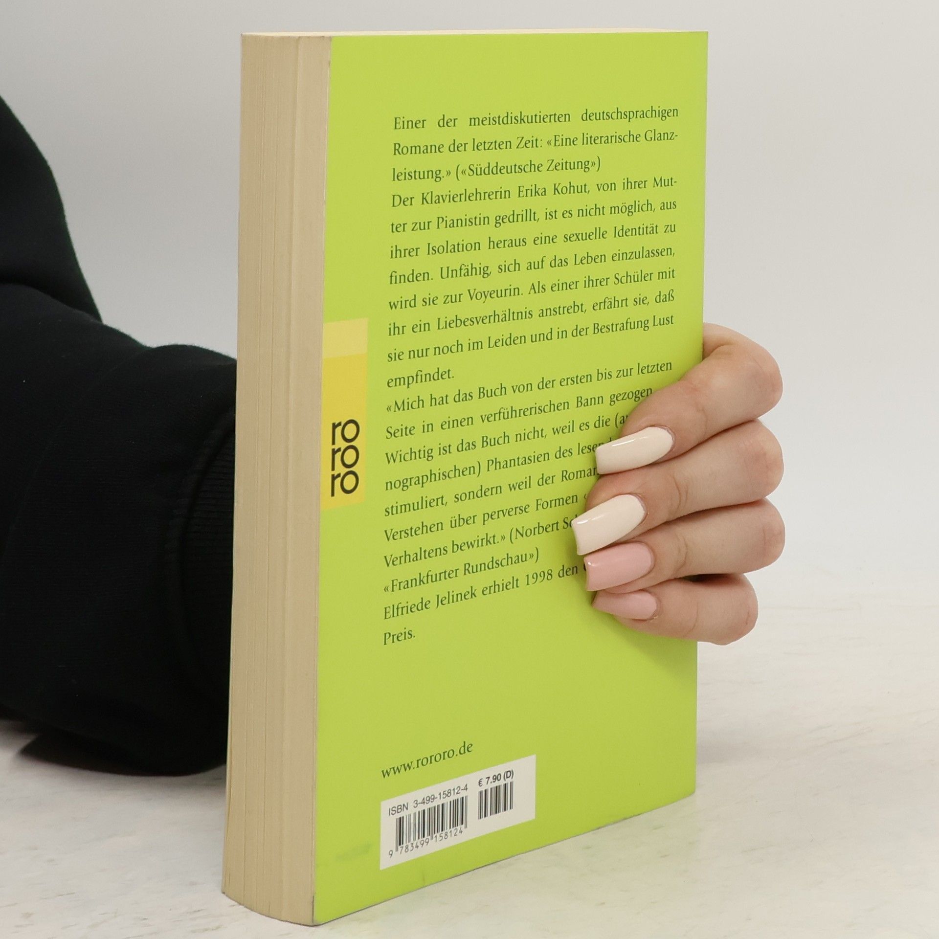«Eine literarische Glanzleistung.» (Süddeutsche Zeitung)Von ihrer Mutter wurde sie unerbittlich zur Pianistin gedrillt. Und nun findet die Klavierlehrerin Erika Kohut nicht mehr aus der Isolation heraus. Unfähig, sich auf das Leben einzulassen, wird sie zur Voyeurin. Als einer ihrer Schüler ein Liebesverhältnis mit ihr anstrebt, erkennt sie, dass sie nur noch im Leiden und in der Bestrafung Lust empfindet.«Die Klavierspielerin» brachte Elfriede Jelinek den endgültigen Durchbruch. Michael Hanekes Verfilmung triumphierte auf dem Filmfestival 2001 in Cannes: Grand Prix der Jury und Darstellerpreise für Isabelle Huppert und Benoît Magimel. Die Autorin wurde für ihr Werk im Jahr 2004 mit dem Nobelpreis für Literatur ausgezeichnet.