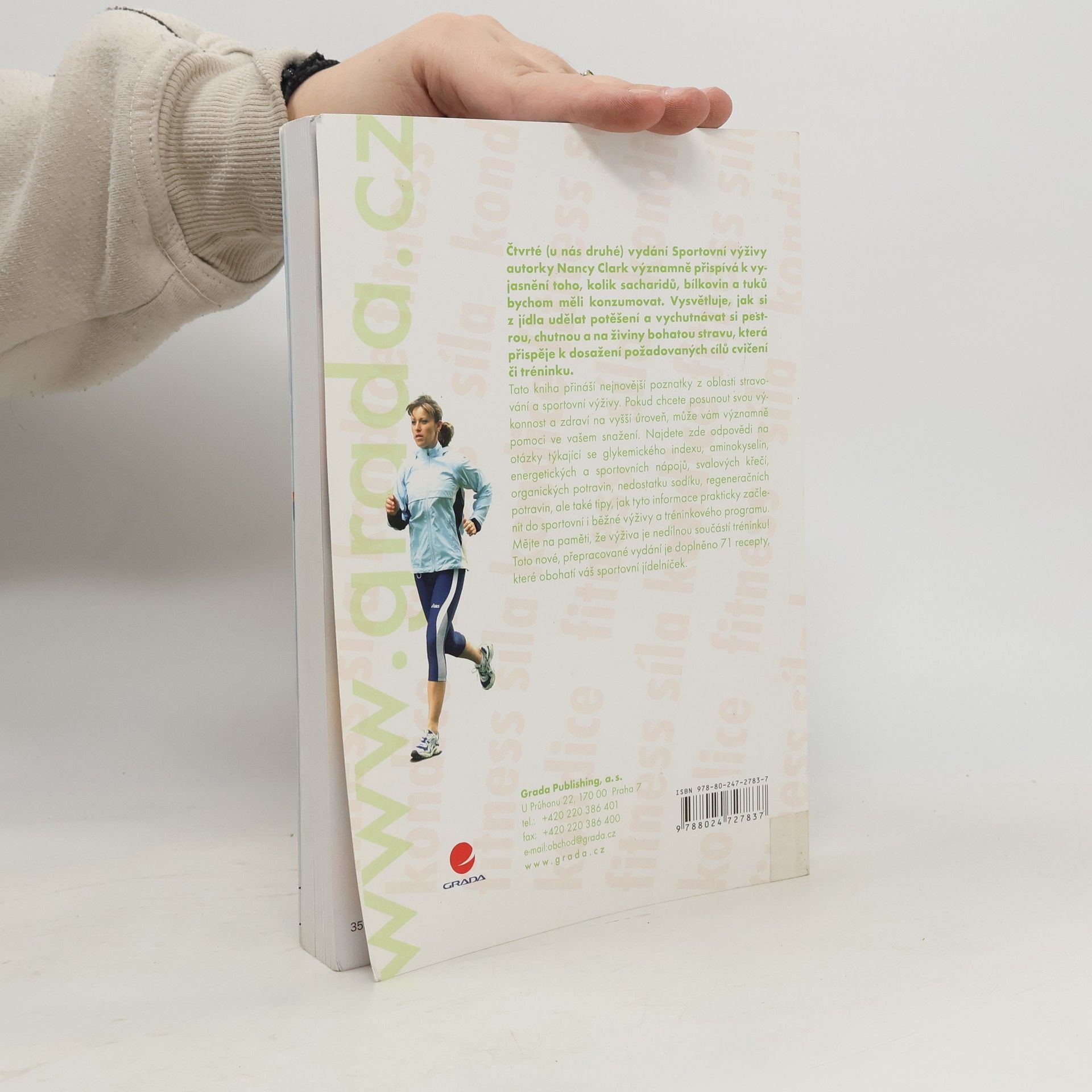 Čtvrté (u nás druhé) vydání Sportovní výživy autorky Nancy Clark významně přispívá k vyjasnění toho, kolik sacharidů, bílkovin a tuků bychom měli konzumovat. Vysvětluje, jak si z jídla udělat potěšení a vychutnávat si pestrou, chutnou a na živiny bohatou stravu, která přispěje k dosažení požadovaných cílů cvičení či tréninku. Tato kniha přináší nejnovější poznatky z oblasti stravování a sportovní výživy. Pokud chcete posunout svou výkonnost a zdraví na vyšší úroveň, může vám významně pomoci ve vašem snažení. Najdete zde odpovědi na otázky týkající se glykemického indexu, aminokyselin, energetických a sportovních nápojů, svalových křečí, organických potravin, nedostatku sodíku, regeneračních potravin, ale také tipy, jak tyto informace prakticky začlenit do sportovní i běžné výživy a tréninkového programu. Mějte na paměti, že výživa je nedílnou součástí tréninku! Toto nové, přepracované vydání je doplněno 71 recepty, které obohatí váš sportovní jídelníček.