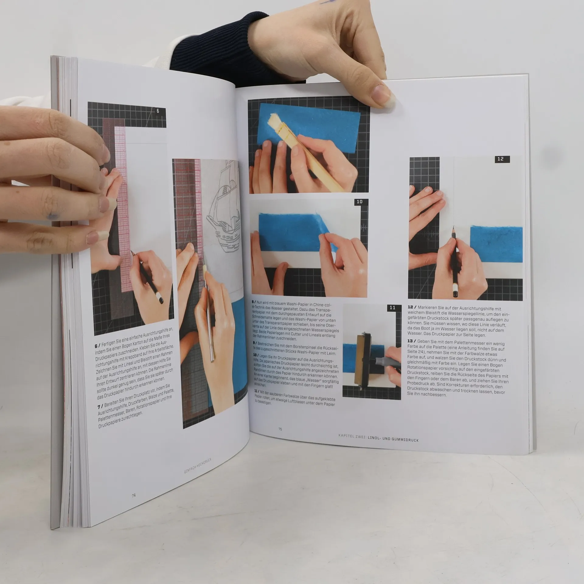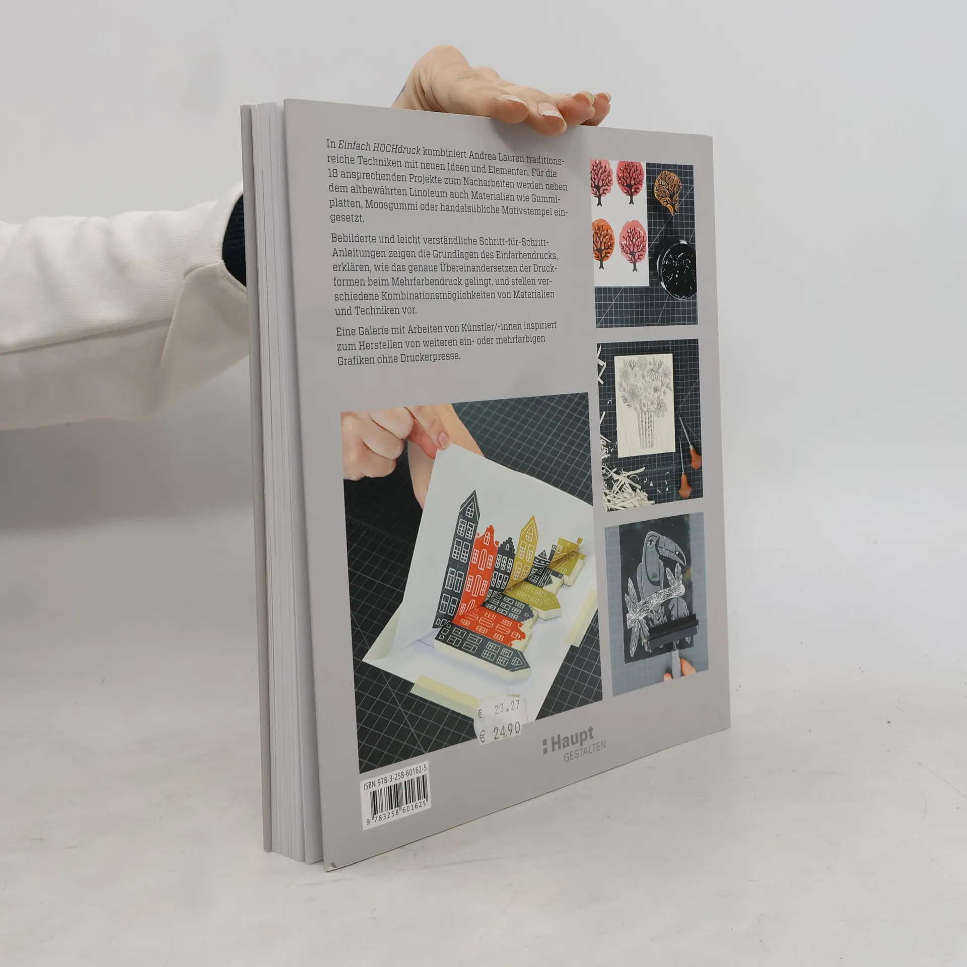 Drucken ohne Druckerpresse: mit Linoleum, Gummiplatten, Moosgummi oder Motivstempeln. Die ganze Vielfalt des Hochdrucks: mit vielen ansprechenden und kunstvollen ein- und mehrfarbigen Projekten. Klare Schritt-für-Schritt-Anleitungen und ein inspirierender Galerieteil. In «Einfach Hochdruck» werden traditionsreiche Techniken mit neuen Ideen und Elementen kombiniert. Für die 18 ansprechenden Projekte zum Nacharbeiten werden neben dem altbewährten Linoleum auch Materialien wie Gummiplatten, Moosgummi oder handelsübliche Motivstempel eingesetzt. Bebilderte und leicht verständliche Schritt-für-Schritt-Anleitungen zeigen die Grundlagen des Einfarbendrucks, erklären, wie das genaue Übereinandersetzen der Druckformen beim Mehrfarbendruck gelingt, und stellen verschiedene Kombinationsmöglichkeiten von Materialien und Techniken vor. Eine Galerie mit Arbeiten von Künstler/innen inspiriert zum Herstellen von weiteren ein- oder mehrfarbigen Grafiken ohne Druckerpresse.