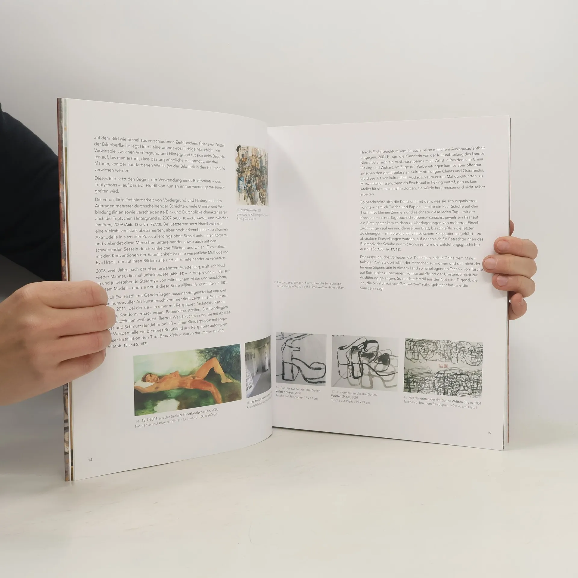 Die Publikation erscheint anlässlich der Austellung des Kunstprojekts „Serendipity“ im Kunstraum Nestroyhof, wo Arbeiten der Malerin und Objektkünstlerin Eva Hradil gezeigt werden. Die Künstlerin verbindet und vernetzt auf ihren Bildern Schuhe, Sessel, Menschen und Buchstaben untereinander und miteinander, unter Verwendung selbsterzeugter Eitemperafarben, die ihren Bildern Vielschichtigkeit und zugleich Transparenz verleihen. Durch Linien und kühne Überschneidungen setzt sie alle und alles in Beziehung. Nicht das Motiv, sondern vielmehr die Verfügbarkeit der Objekte spielt eine Rolle. In ihrer Malerei bildet Eva Hradil nicht die Realität ab, sondern verwendet Gegenstände, um sie so lange zu zerlegen und ineinander zu verschachteln und zu verweben, bis sie oft nicht mehr einzeln erkennbar sind und als rein abstrakte Formen erscheinen. Auch werden in Hradils Bildern Gegenwart und Vergangenheit miteinander in Beziehung gebracht. Alte Fotografien und Rechnungsbelege, Briefmarken und Stoffreste werden auf ihren Collagen maltechnisch verbunden. So zieht sie Fäden zwischen damals und jetzt – im wahrsten Sinne des Wortes.