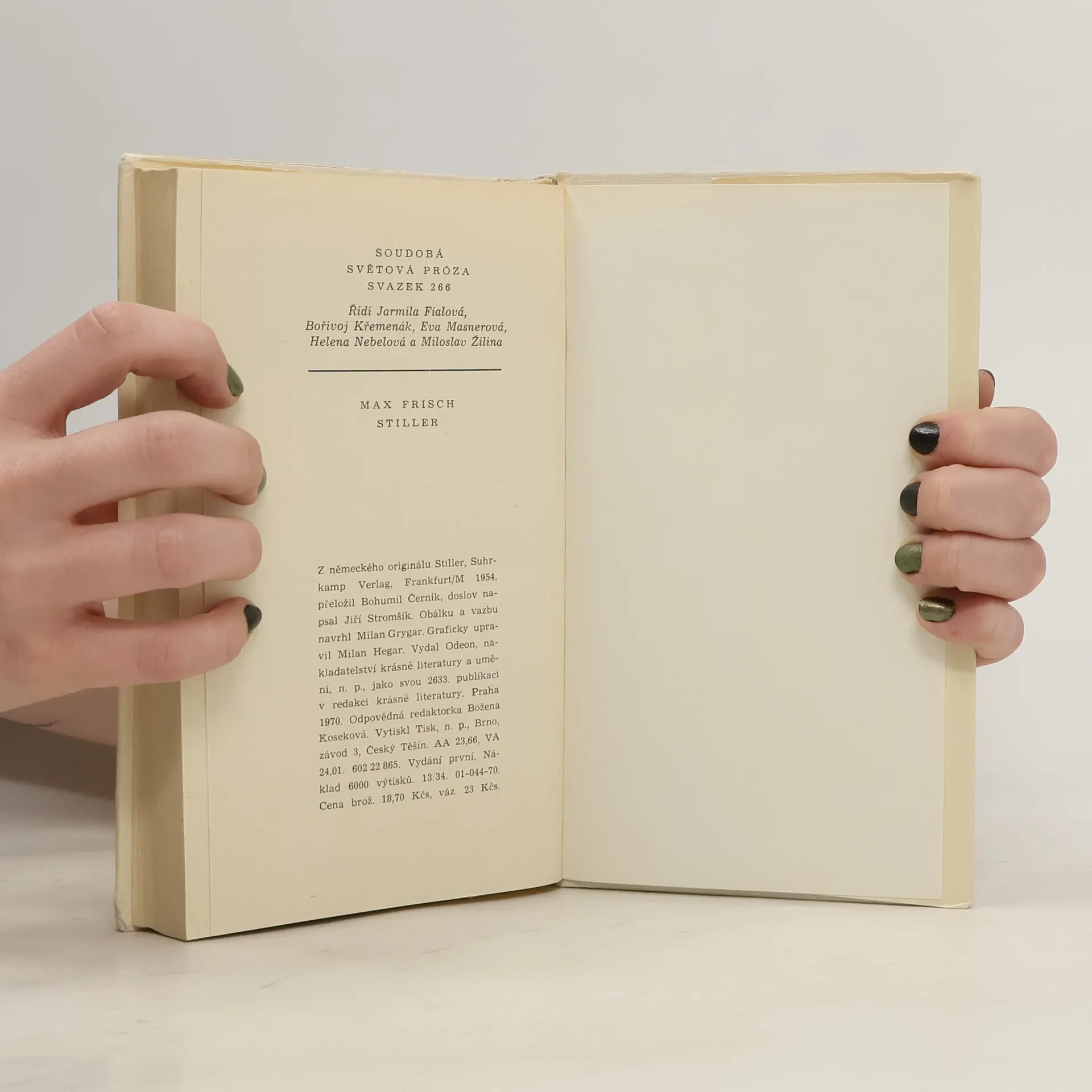 První ze tří románů švýcarského žurnalisty, dramatika a spisovatele spojených společnou problematikou ve volnou trilogii (Stiller, Homo Faber, Mé jméno budiž Gantenbein). Expozici tohoto románu o člověku moderní doby, marně hledajícím ve společnosti sebeuplatnění, tvoří příběh zadrženého muže na švýcarských hranicích, který je vyšetřován pro podezření, že není tím člověkem, za kterého se vydává. Soudně prováděné vyšetřování a nakonec obžaloba odhaluje člověka, jenž pochopil svou životní bezúspěšnost, odjel do ciziny, změnil jméno a v honbě za specifickým sebeuplatněním, v podstatě v honbě za svobodou pro svobodu, promarnil svůj život. Doslov napsal Jiří Stromšík.
