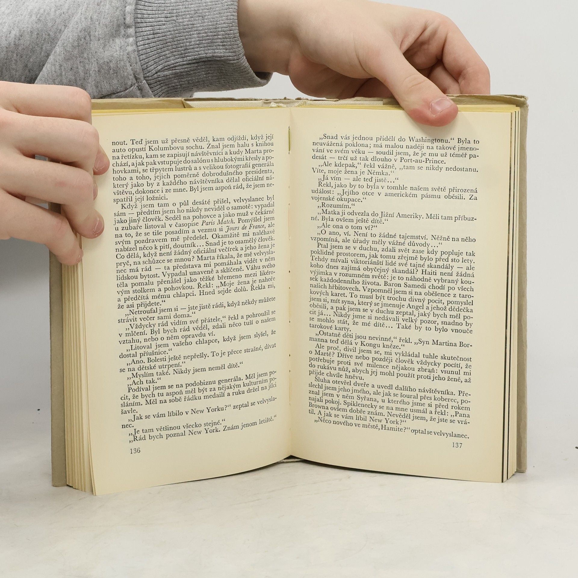 Příběh, umístěný do násilnického prostředí presidentské diktatury ve středoamerické republice Haiti, líčí osudy tří zdánlivě nedotknutelnych cizinců, kteří jsou v tomto prostředí donuceni hrát jiné životní úlohy, než jak vyplývá z jejich přirozenosti. Román slučující vlastnosti napínavé četby s hluboce lidsky vážnou tématikou. Doslov Stanislav Mareš.