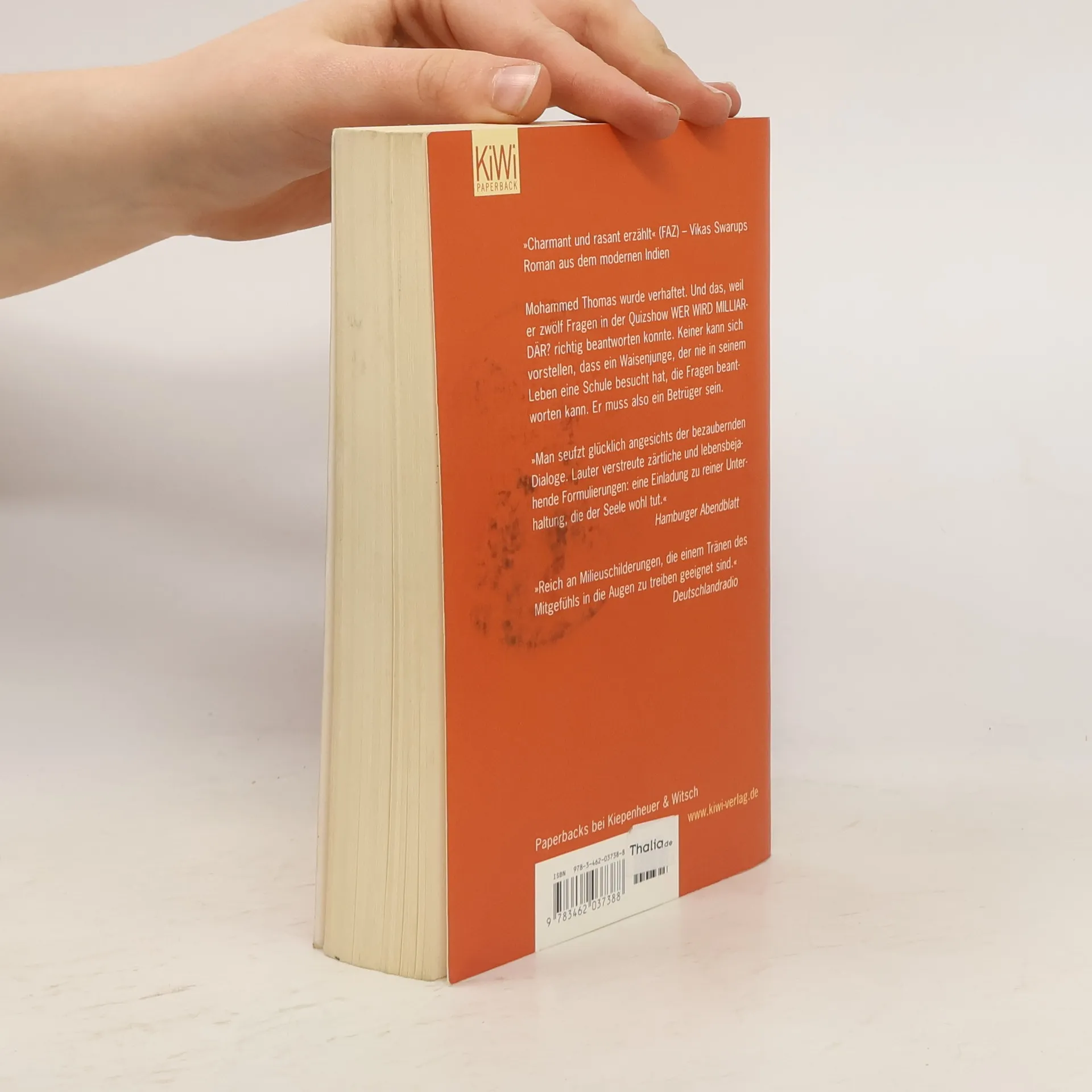 »Charmant und rasant erzählt« (FAZ) – Vikas Swarups Roman aus dem modernen Indien Warum sitzt ein armer indischer Kellner im Gefängnis? Er hat a) zu viel Whisky getrunken b) Geld aus der Kasse geklaut c) sich mit einem Kunden geprügelt d) in einer Quizshow gewonnen Mohammed Thomas wurde verhaftet. Und das, weil er zwölf Fragen in der Quizshow WER WIRD MILLIARDÄR? richtig beantworten konnte. Keiner kann sich vorstellen, dass ein Waisenjunge, der nie in seinem Leben eine Schule besucht oder eine Zeitung gelesen hat, weiß, wie der kleinste Planet unseres Sonnensystems heißt oder welche Stücke aus der Feder Shakespeares stammen. Er muss also ein Betrüger sein. Gemeinsam mit einer Anwältin, die wie die gute Fee aus dem Märchen im Gefängnis erscheint und Ram helfen will, schaut er sich die Videoaufzeichnung der Quizshow an, und erzählt ihr und dem Leser aus seinem unglaublichen Leben. Nach und nach wird klar, warum er die richtigen Antworten wusste. Rupien! Rupien! wurde 2009 verfilmt (Slumdog Millionär).