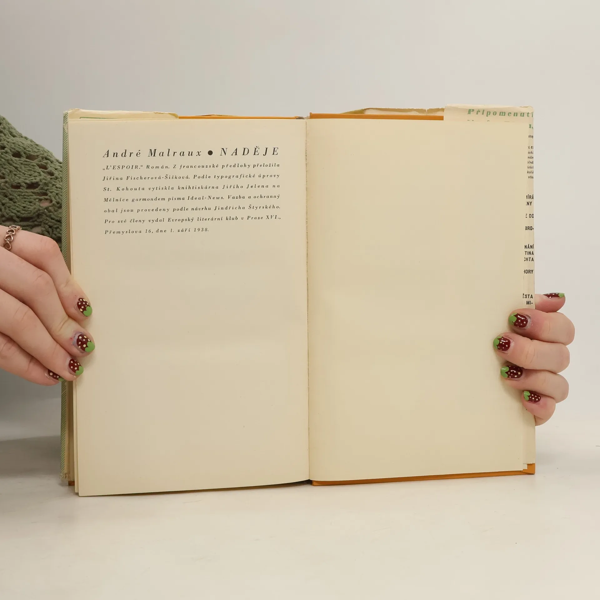 Román o španělské občanské válce z pera francouzského spisovatele (průkopníka dokumentárního či reportážního románu), jeden z nejlepších románů s tímto námětem, napsaný formou dokumentární reportáže. Vlastním tématem tohoto románu bez románových hrdinů v tradičním slova smysluje drama moderního člověka – dialog člověka činu a člověka usilujícího o nalezení smyslu svého bytí na pozadí rozpadající se společnosti a tradičních hodnot v době revoluce. Doslov napsal Emil Vachek.