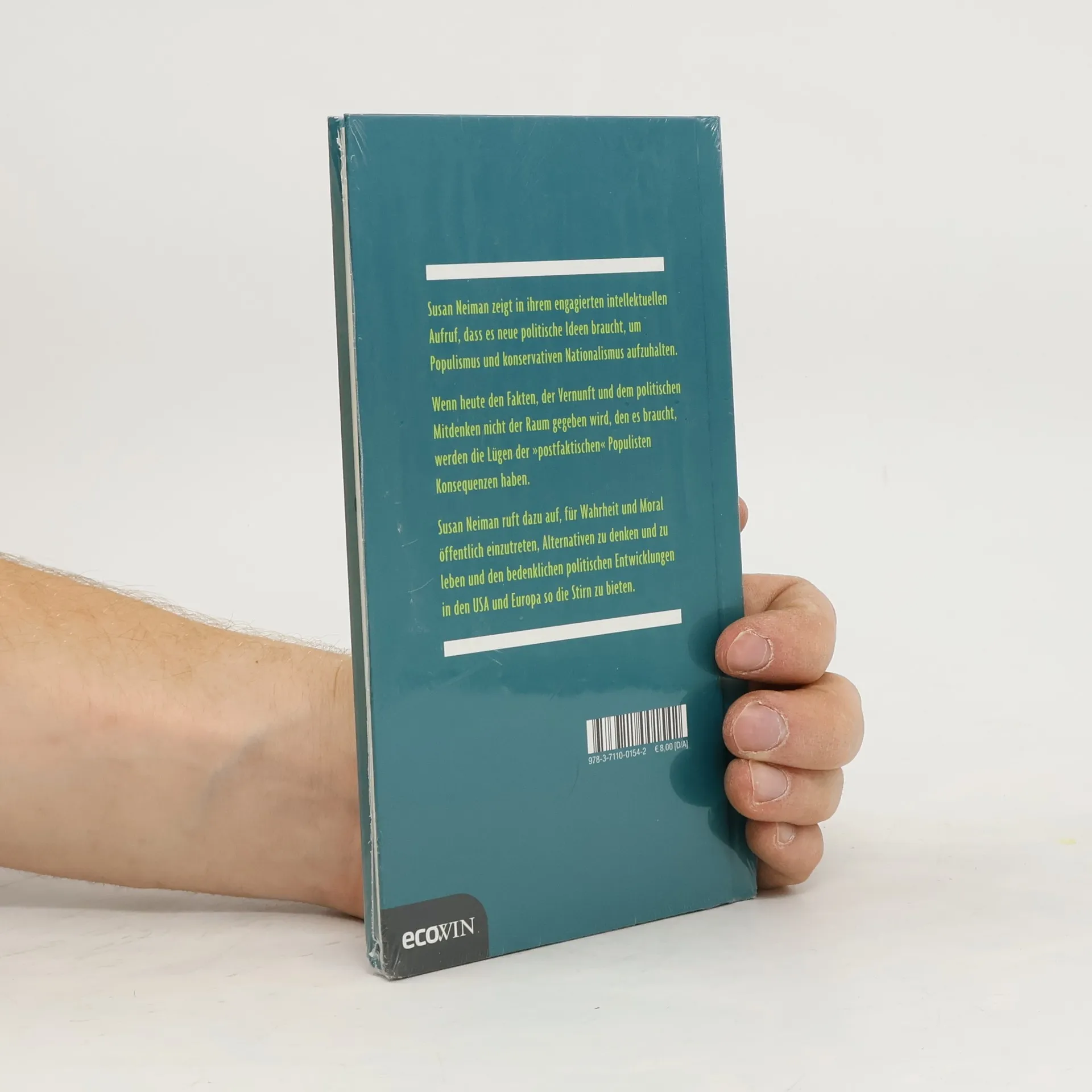 Susan Neiman zeigt in ihrem intellektuellen Aufruf, dass es neue politische Ideen braucht, um Populismus und konservativen Nationalismus aufzuhalten. Wenn heute den Fakten, der Vernunft und dem politischen Mitdenken nicht der Raum gegeben wird, den es bracht, werden die Lügen der »postfaktischen« Populisten Konsequenzen haben. Susan Neiman ruft dazu auf, für Wahrheit und Moral öffentlich einzutreten, Alternativen zu denken und zu leben und den bedenklichen politischen Entwicklungen in den USA und Europa so die Stirn zu bieten.