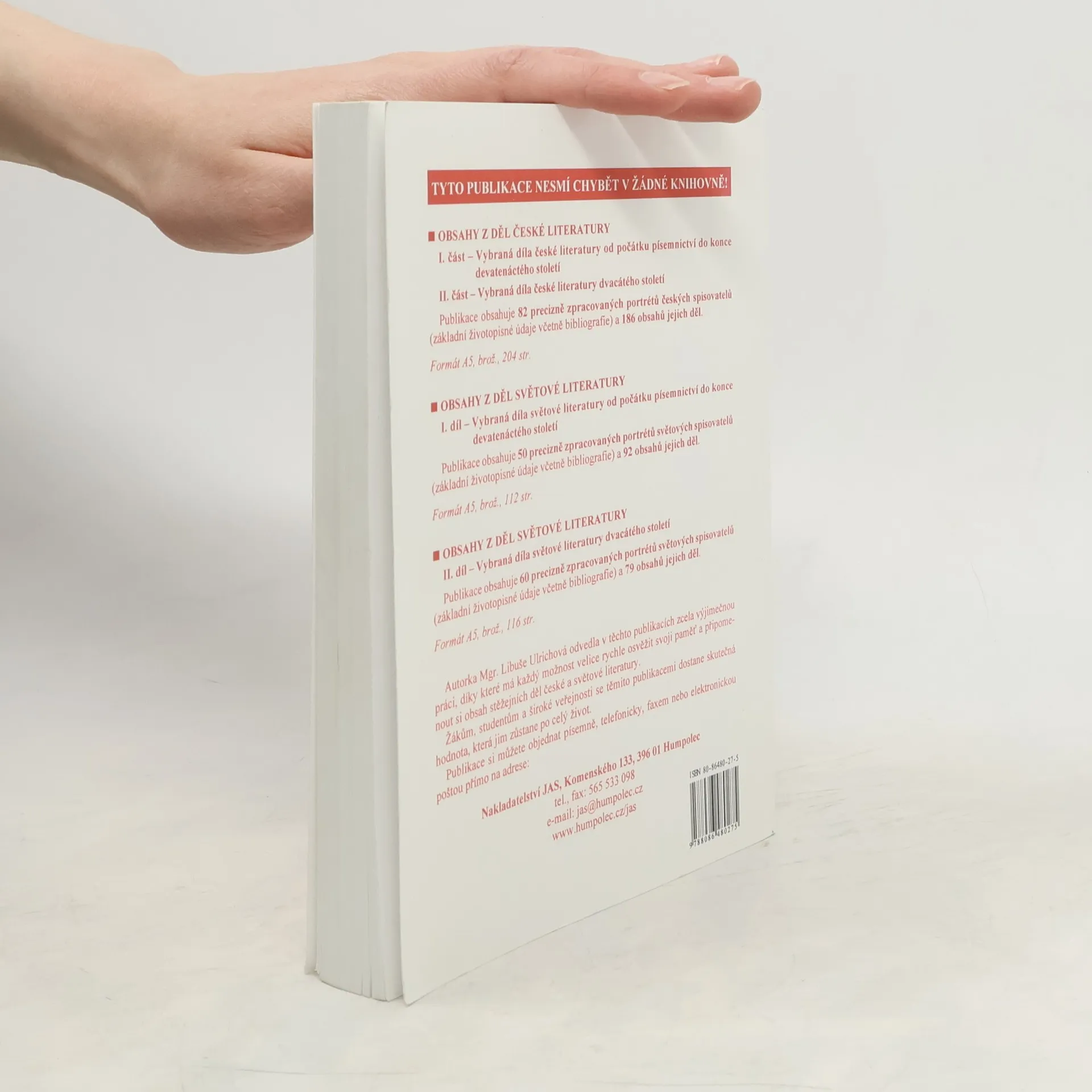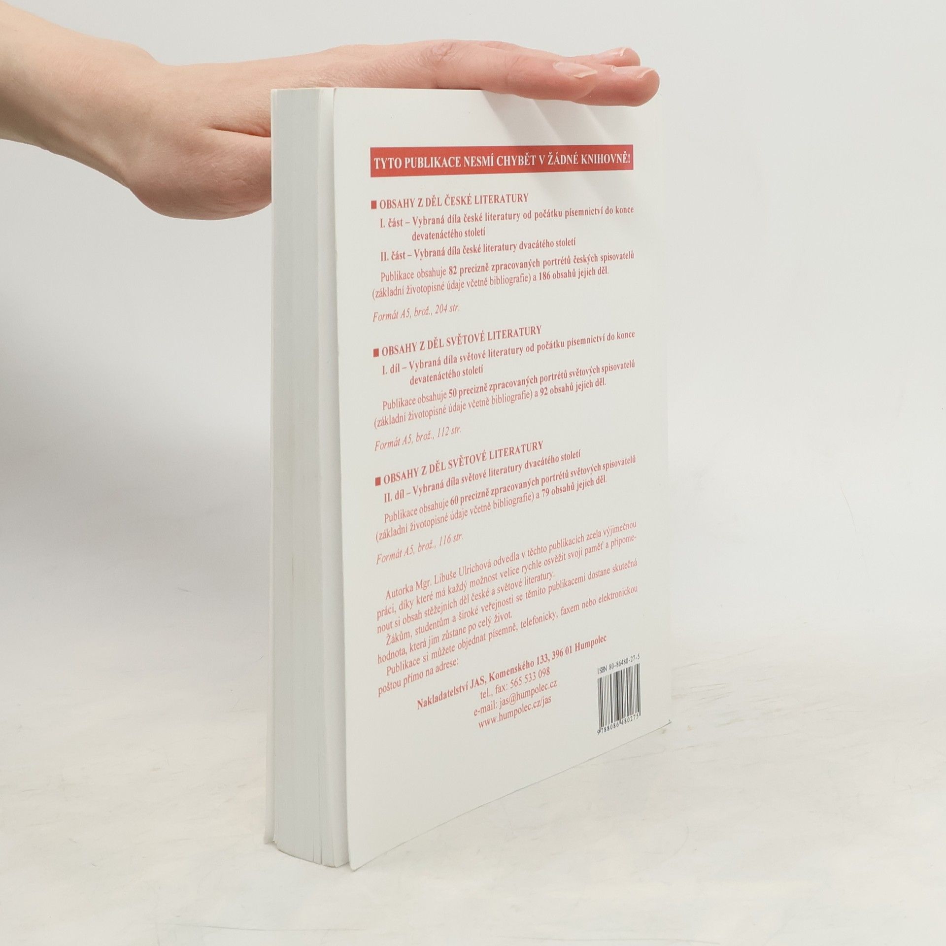 331 českých spisovatelů od počátku písemnictví do současnosti. Poskytuje základní informace nejen o autorech, o kterých se žáci dozvídají ve škole, ale i o těch, kteří by měli patřit do jejich kulturního povědomí. U každého autora jsou uvedena životní data, jeho stručná charakteristika, životopis a výklad autorovy tvorby s výčtem hlavních děl a rokem prvního vydání.