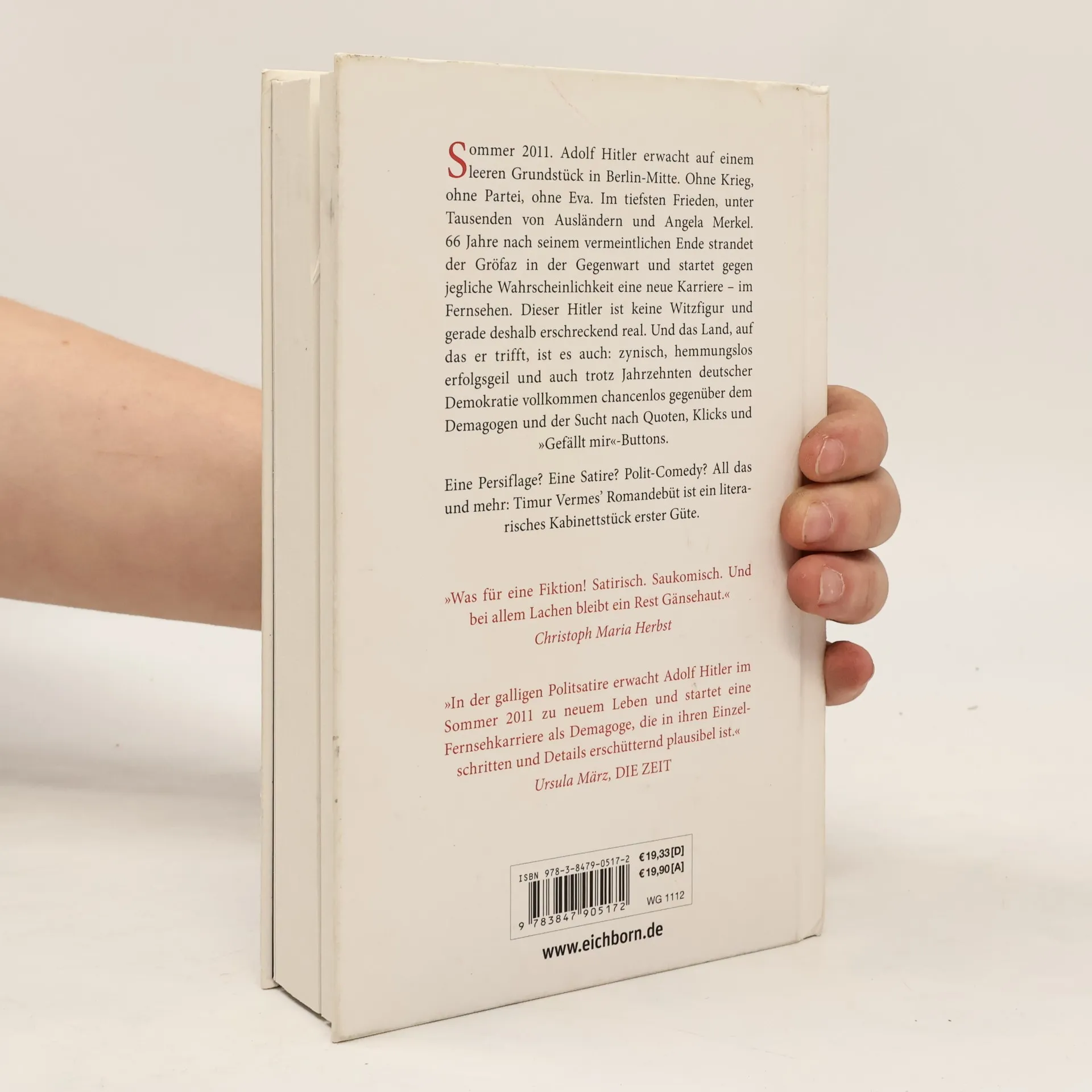 Sommer 2011. Adolf Hitler erwacht auf einem leeren Grundstück in Berlin-Mitte. Ohne Krieg, ohne Partei, ohne Eva. Im tiefsten Frieden, unter Tausenden von Ausländern und Angela Merkel. 66 Jahre nach seinem vermeintlichen Ende strandet der Gröfaz in der Gegenwart und startet gegen jegliche Wahrscheinlichkeit eine neue Karriere - im Fernsehen. Dieser Hitler ist keine Witzfigur und gerade deshalb erschreckend real. Und das Land, auf das er trifft, ist es auch: zynisch, hemmungslos erfolgsgeil und auch trotz Jahrzehnten deutscher Demokratie vollkommen chancenlos gegenüber dem Demagogen und der Sucht nach Quoten, Klicks und „Gefällt mir“-Buttons. Eine Persiflage? Eine Satire? Polit-Comedy? All das und mehr: Timur Vermes' Romandebüt ist ein literarisches Kabinettstück erster Güte.