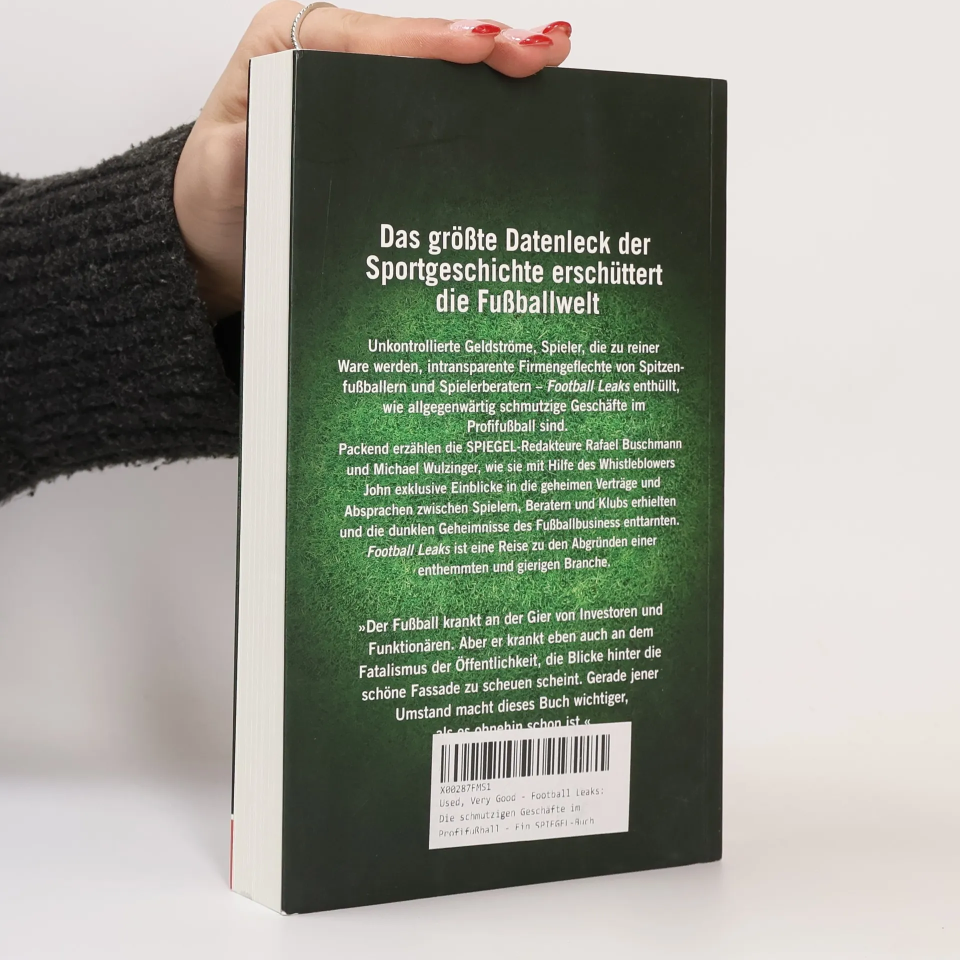 Das größte Datenleck der Sportgeschichte erschüttert die Fußballwelt Dass es in der Welt des Fußballs immer weniger um den Sport und immer mehr um schmutzige Geschäfte geht, ahnen die Fans nicht erst seit den Skandalen um die Fifa und die vermeintlich gekaufte WM 2006 in Deutschland. Die „Football Leaks“ bieten nun erstmals Einblicke in die Schattenwelt der Branche, offenkundig wird die grenzenlose Gier, die hinter den Kulissen des Weltfußballs herrscht. Der Whistleblower „John“ hat dem SPIEGEL 1,9 Terabyte geheimer Daten übergeben: Rund 18,6 Millionen Dokumente über Verhandlungen, Verträge und Abkommen, die deutlich machen, dass für die Akteure im Profifußball Moral und Gesetz oft kaum Gültigkeit zu haben scheinen – weder für Vereine, Spieler, Manager noch für die mächtigen, aber im Hintergrund agierenden Spielerberater. In „Football Leaks“ beschreiben Rafael Buschmann und Michael Wulzinger die wichtigsten Enthüllungen, die sie aus dem riesigen Datenberg in monatelanger Recherche zusammengetragen haben. Zugleich ist ihr Buch die packende Geschichte eines Whistleblowers, der den Fußball von mafiösen Einflüssen befreien will – und der inzwischen selbst zum Gejagten geworden ist.