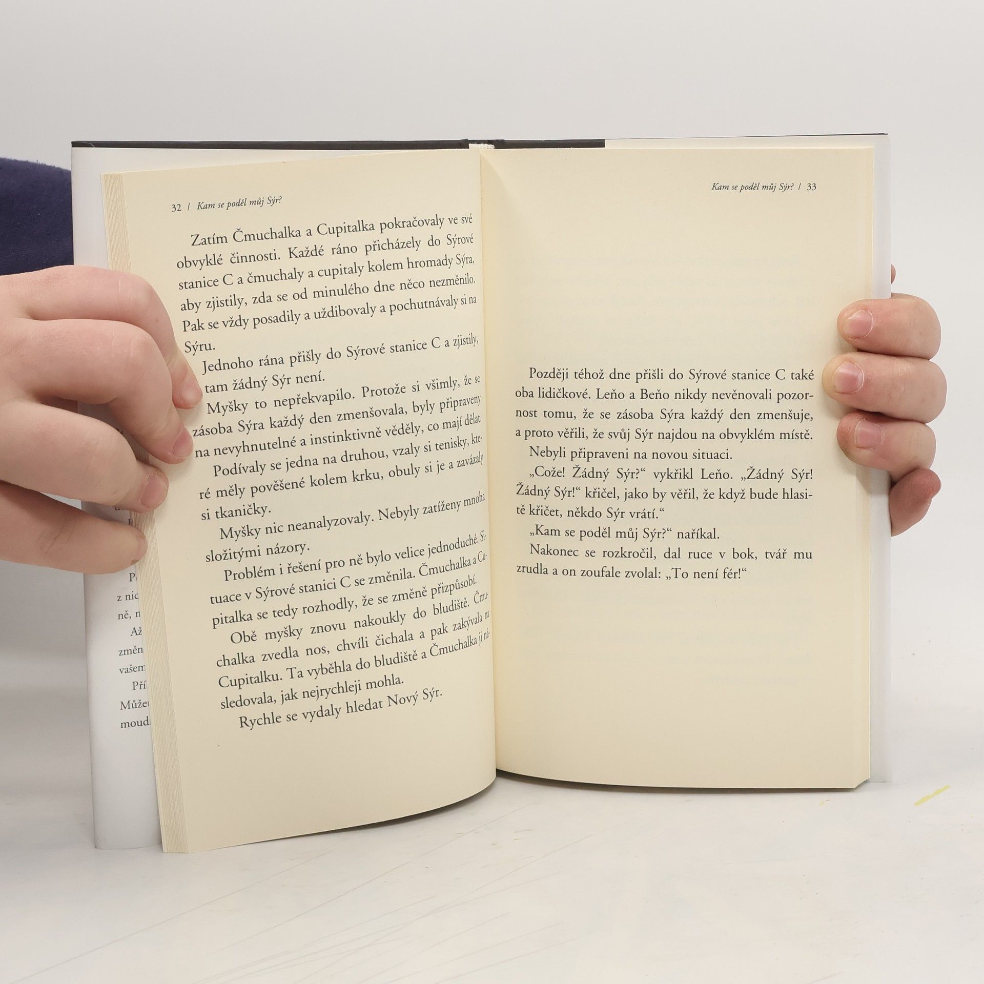 Jedná se o podobenství, které odhaluje hluboké pravdy o změně. Je to zábavný a poučný příběh o čtyřech zajímavých postavičkách, které žijí v „Bludišti“, kde hledají „Sýr“. Sýr je metaforou toho, co v životě chceme, ať už je to zaměstnání, partnerský vztah, peníze, dům, svoboda, dobré zdraví, společenské uznání nebo duševní vyrovnanost. Bludiště je místo, kde hledáme to, co chceme.