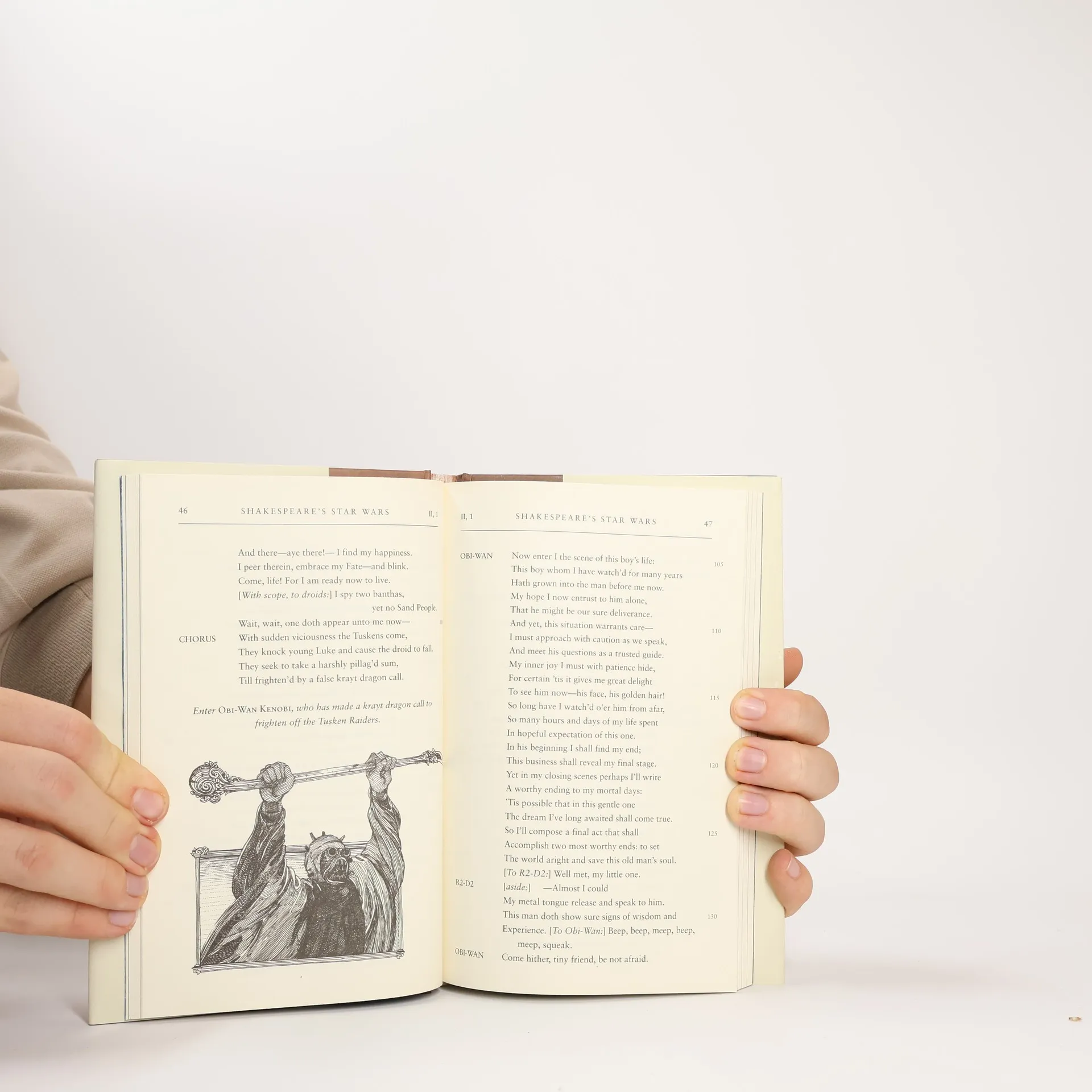 The New York Times Best Seller Experience the Star Wars saga reimagined as an Elizabethan drama penned by William Shakespeare himself, complete with authentic meter and verse, and theatrical monologues and dialogue by everyone from Darth Vader to R2D2. Return once more to a galaxy far, far away with this sublime retelling of George Lucas’s epic Star Wars in the style of the immortal Bard of Avon. The saga of a wise (Jedi) knight and an evil (Sith) lord, of a beautiful princess held captive and a young hero coming of age, Star Wars abounds with all the valor and villainy of Shakespeare’s greatest plays. Authentic meter, stage directions, reimagined movie scenes and dialogue, and hidden Easter eggs throughout will entertain and impress fans of Star Wars and Shakespeare alike. Every scene and character from the film appears in the play, along with twenty woodcut-style illustrations that depict an Elizabethan version of the Star Wars galaxy. Zounds! This is the book you’re looking for.