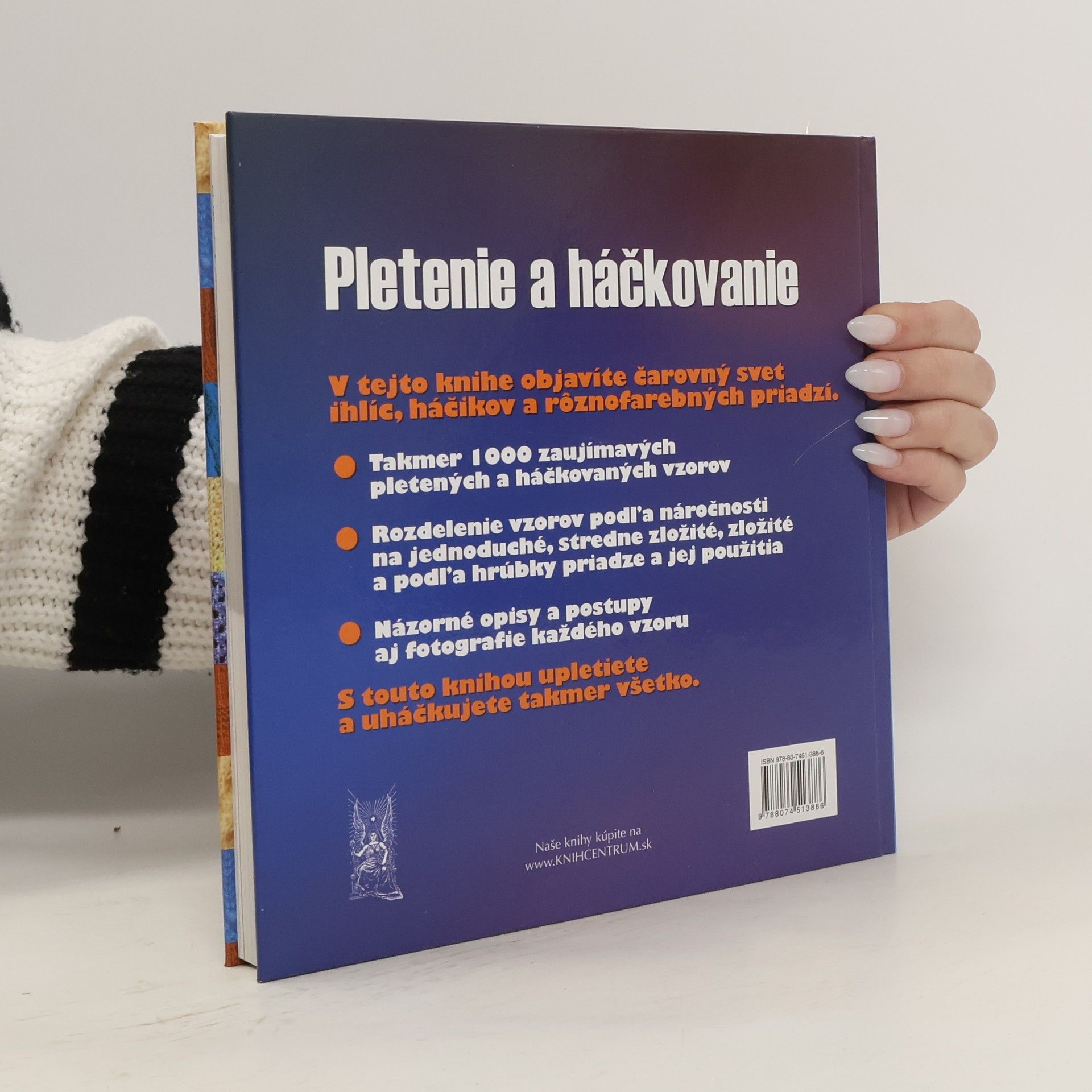 V tejto knihe objavíte čarovný svet ihlíc, háčikov a rôznofarebných priadzí. Takmer 1000 zaujímavých pletených a háčkovaných vzorov, rozdelených podľa náročnosti a zložitosti, podľa hrúbky priadze a jej použitia. Názorné opisy a postupy s fotografiami každého vzoru. S touto knihou upletiete a uháčkujete takmer všetko.