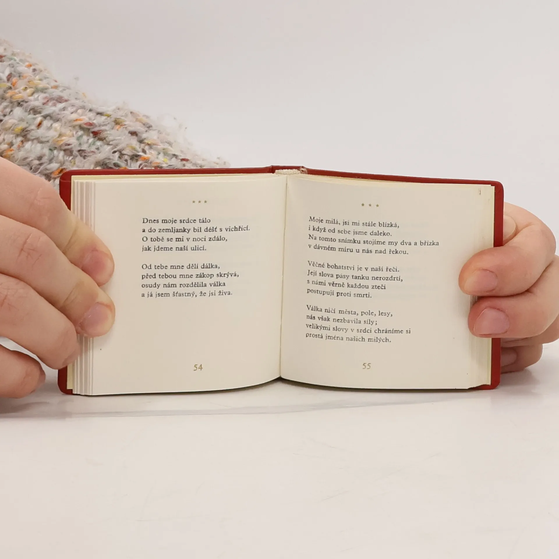 Verše o lásce k ženě a k člověku na pozadí motivů přírodních, společenských, válečných i všelidských. Kolibří vydání.