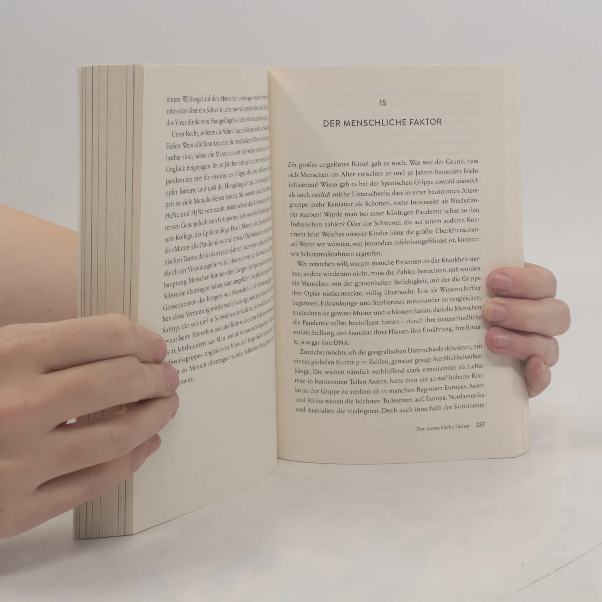 Eine Pandemie, die alles veränderte – der brandaktuelle SPIEGEL-Bestseller zur Geschichte der Spanischen Grippe jetzt im Taschenbuch! Es begann mit einem Virus, es endete im Massensterben und in einer völlig neuen Welt: Laura Spinneys Bestseller über die Spanische Grippe von 1918 zieht unfreiwillig akkurate Parallelen ins Heute. Als prämierte Wissenschaftsjournalistin und Bestseller-Autorin hat Laura Spinney eigentlich nur ihren Job gemacht. Ihr Buch über die Spanische Grippe und ihre allumfassenden Folgen für die gesamte Welt ist akribisch recherchiert, kenntnisreich analysiert und in einem atemberaubenden Tempo geschrieben, bei dem Medizingeschichte im Handumdrehen zum Thriller wird. Doch nur wenige Jahre nach der Ersterscheinung auf Deutsch ist „1918 – Die Welt im Fieber“ zu einem fast prophetischen Kompendium geworden, das ungeahnte Parallelen zwischen den Jahren 1918 und 2020 zieht. Denn die Spanische Grippe und die Ausbreitung der Corona-Pandemie gleichen sich nicht nur in ihrem Krankheitsverlauf, sondern auch in der Reaktion der Menschen auf Vorsichtsmaßnahmen, Impfungen und die kulturelle Veränderung. Spanische Grippe und Corona: Wiederholt sich die Geschichte? Ohne das Wissen aus der Infektionskette der Spanischen Grippe hätte die heutige Medizin nicht so schnell reagieren können – und wir hätten Covid-19 nicht so schnell verstanden. Laura Spinney bleibt bei den Fakten, aber wirft zwingende Fragen auf, die aus trockener Geschichtsbetrachtung einen tiefgreifenden Perspektivwechsel machen. Faktenreich und spannend wie ein Thriller, erstklassig recherchiert, brillant erzählt: Das vielleicht wichtigste Geschichtsbuch unserer Zeit Viren hat es immer gegeben. Seuchen ebenso. Doch bisher blieben sie immer im Nebel der Geschichte. Der SPIEGEL-Bestseller „1918 – Die Welt im Fieber“ holt die Erfahrungen der Menschheit mitten hinein ins Heute. Ein Taschenbuch, das man gelesen haben muss!
