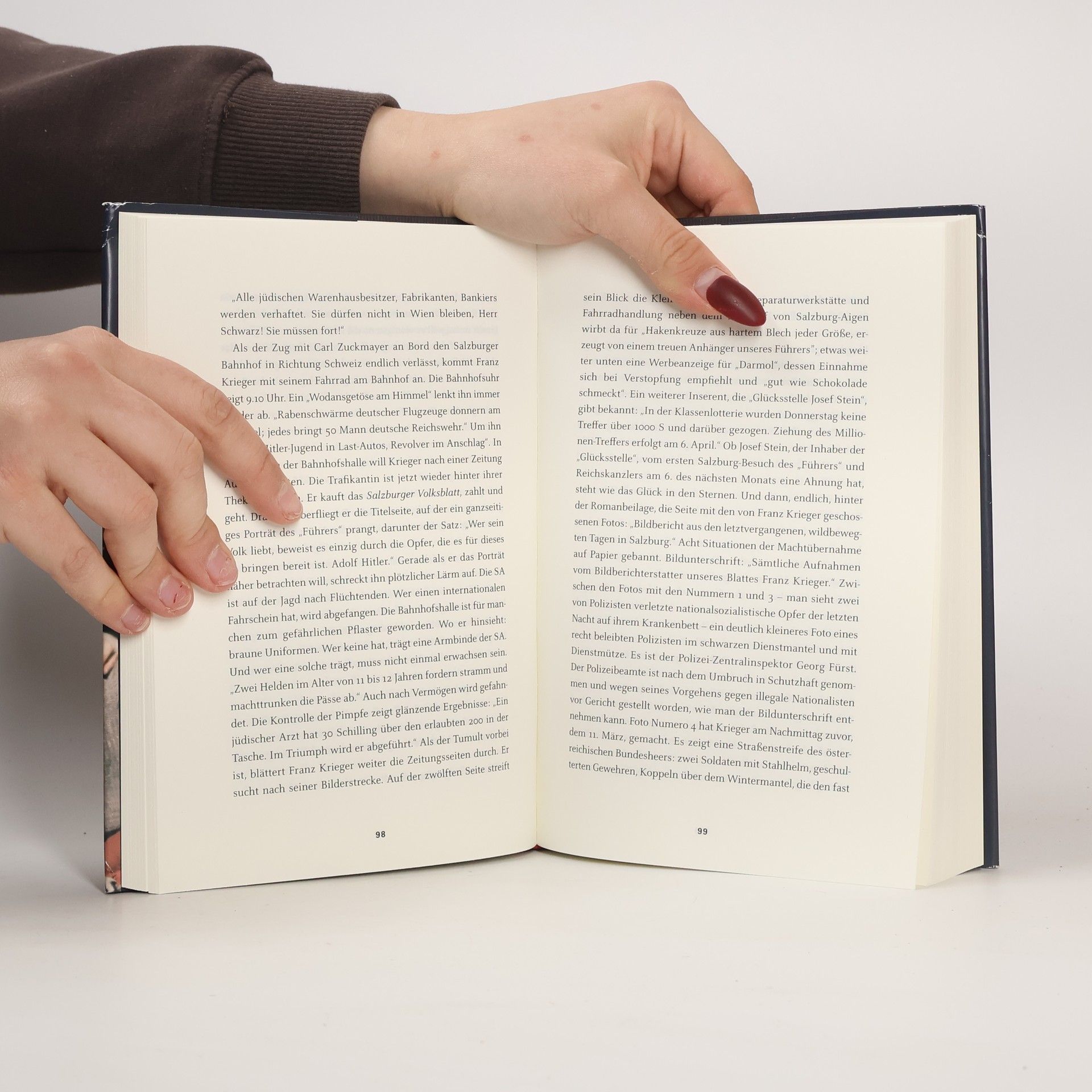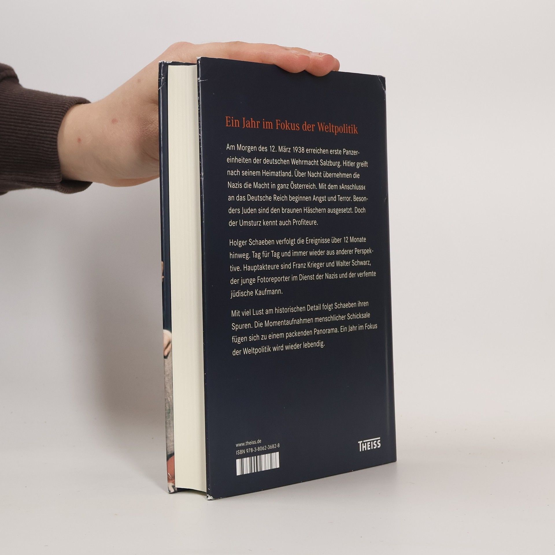 Am Morgen des 12. März 1938 erreichen erste Panzereinheiten der deutschen Wehrmacht Salzburg. Hitler greift nach seinem Heimatland. Über Nacht übernehmen die Nazis die Macht in ganz Österreich. Mit dem ›Anschluss‹ an das Deutsche Reich beginnen Angst und Terror. Besonders Juden sind den braunen Häschern ausgesetzt. Doch der Umsturz kennt auch Profiteure. Holger Schaeben verfolgt die Ereignisse über 12 Monate hinweg. Tag für Tag und immer wieder aus anderer Perspektive. Hauptakteure sind Franz Krieger und Walter Schwarz, der junge Fotoreporter im Dienst der Nazis und der verfemte jüdische Kaufmann. Zum Personal gehören weiterhin Bundeskanzler Kurt Schuschnigg, Arturo Toscanini und die Trapp-Familie, zahllose Nazigrößen und einfache Bürger. Mit viel Lust am historischen Detail folgt Schaeben ihren Spuren. Die Momentaufnahmen menschlicher Schicksale fügen sich zu einem packenden Panorama. Ein Jahr im Fokus der Weltpolitik wird wieder lebendig.