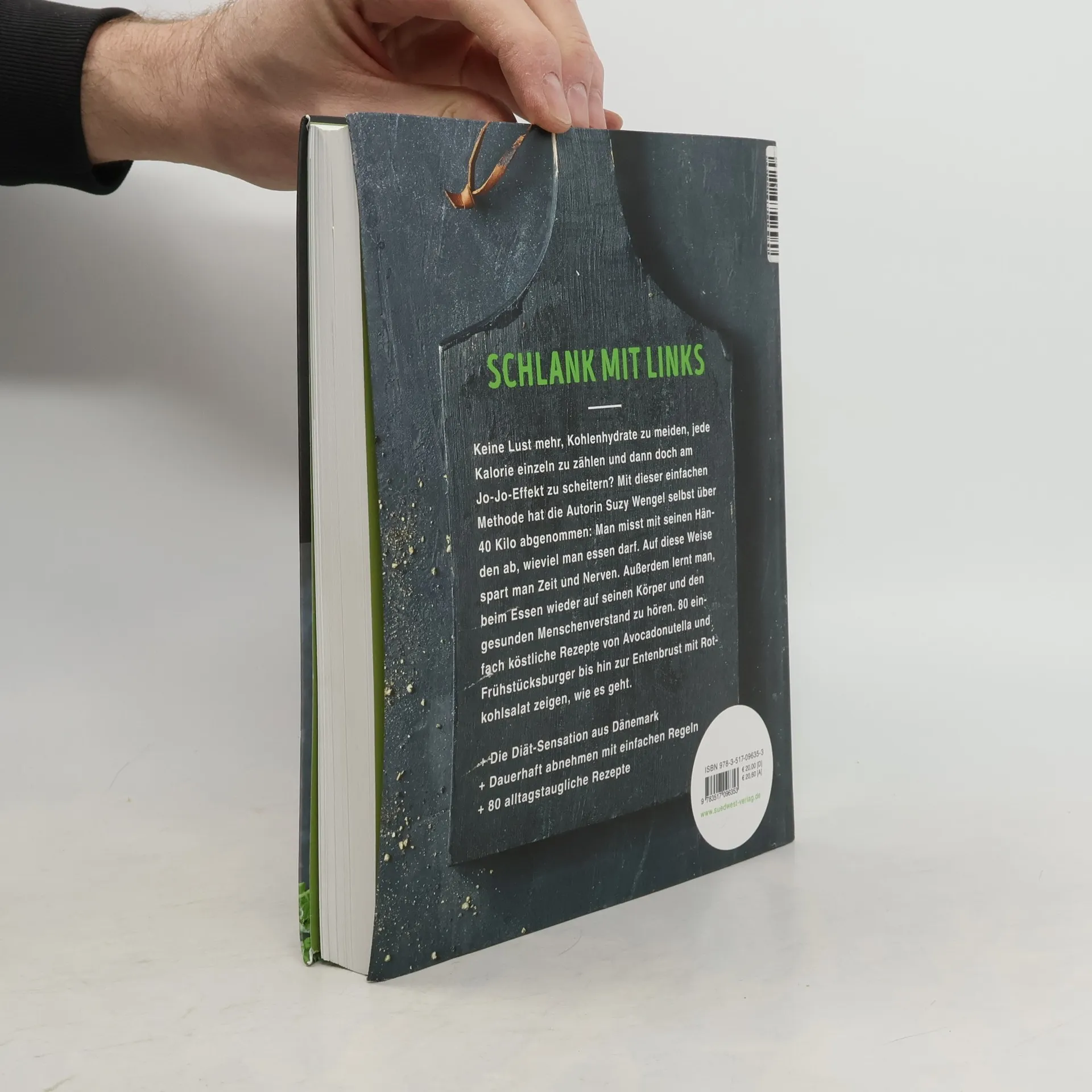 Schlank mit links Die Diät-Sensation, die Dänemark im Sturm erobert hat, kommt nun auch nach Deutschland! Ihre Erfinderin Suzy Wengel hat selbst über 40 Kilo mit dieser einfachen Methode verloren: Man misst mit seinen Händen ab, was man essen darf. Auf diese Weise spart man viel Zeit und ernährt sich trotzdem typgerecht. Außerdem lernt man, in Sachen Essen wieder auf seinen Körper und den gesunden Menschenverstand zu hören. Kein Kalorienzählen, kein High-Dies und Low-Das, sondern 80 einfach köstliche Rezepte von Avocadonutella bis Tortillapizza. Ausstattung: ca. 100 Farbfotos