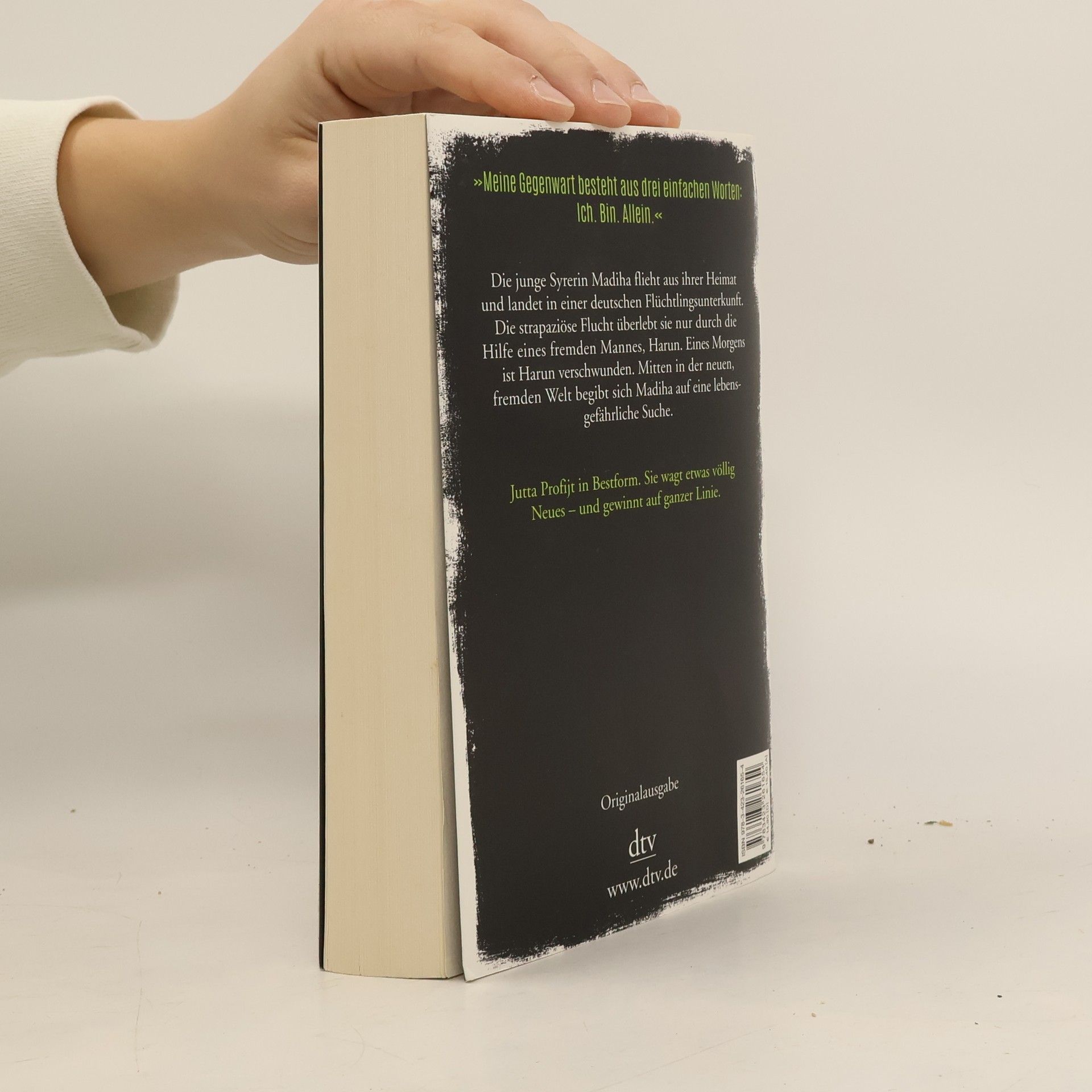 Madiha muss aus ihrem syrischen Heimatdorf fliehen und landet in einem deutschen Flüchtlingsheim. Die strapaziöse Flucht überlebt die gehbehinderte Frau nur durch die Hilfe eines fremden Mannes, Harun. Eines Morgens ist Harun verschwunden. Auf Drängen ihrer deutschen Betreuerin gibt Madiha eine Vermisstenanzeige auf. Noch in derselben Nacht fliegt ein Molotow- Cocktail in das Zimmer, und Haruns Kleidung wird gestohlen. Die sicher geglaubte neue Welt jagt Madiha immer mehr Angst ein. Doch das Schicksal Haruns lässt ihr keine Ruhe, und sie beschließt, sich selbst auf die Suche nach ihm zu machen. Kurz darauf bemerkt Madiha, dass sie verfolgt wird.