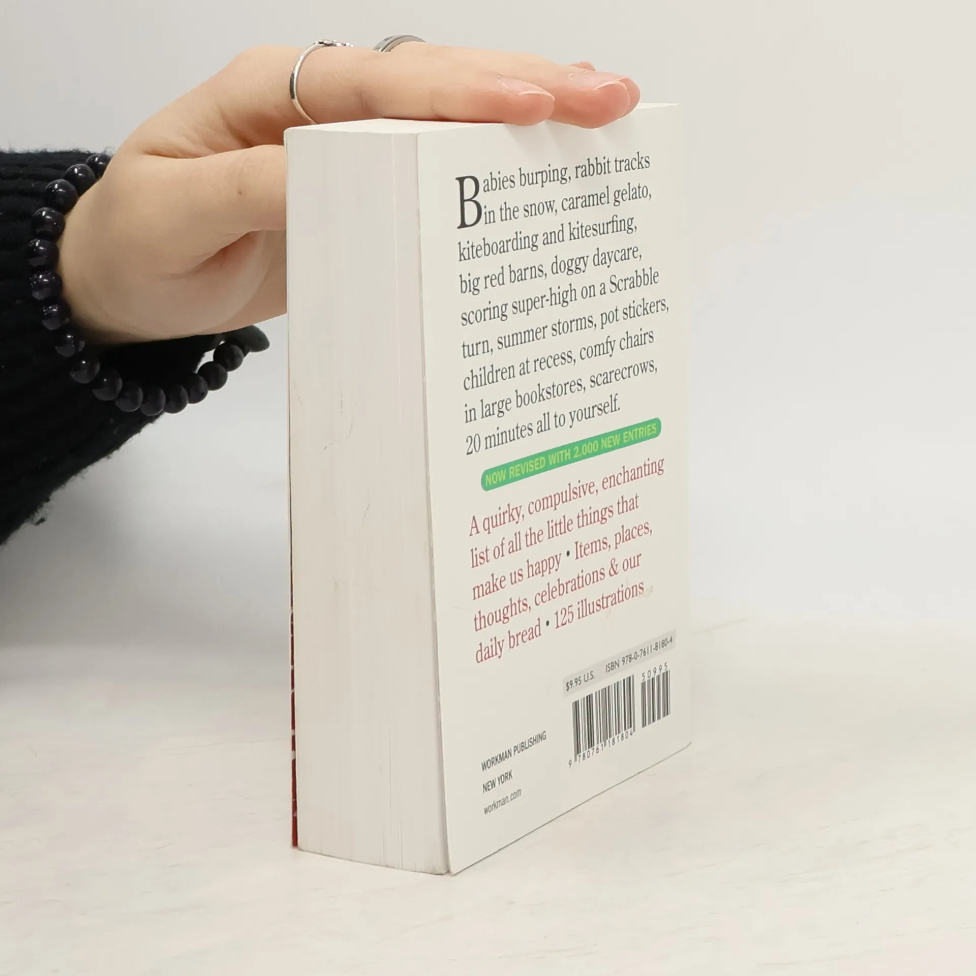 Something to be happy about: This mesmerizing bestseller is revised and updated. Originally published 25 years ago (happy anniversary!) from a list that Barbara Ann Kipfer started making as a child, it’s the book that marries obsession with happiness. And it now has 4,000 fresh and more current reasons to be happy: Rabbit tracks in the snow. Kiteboarding and kitesurfing. Caramel gelato. Scoring super-high on a Scrabble turn. Babies burping. Summer storms. White cupcakes with multicolored sprinkles. Big red barns. 20 minutes all to yourself. No opinions, no explanations, no asides, no footnotes, editorializing, or proselytizing. Just the simple premise of a list of things that make us smile. With its chunky shape, striking black-and-white cover, and 100 whimsical illustrations by Pierre Le-Tan, the new 14,000 Things is an irresistible catalog of good thoughts completely updated to reflect today’s world—and an uplifting gift for people of all moods and all ages.