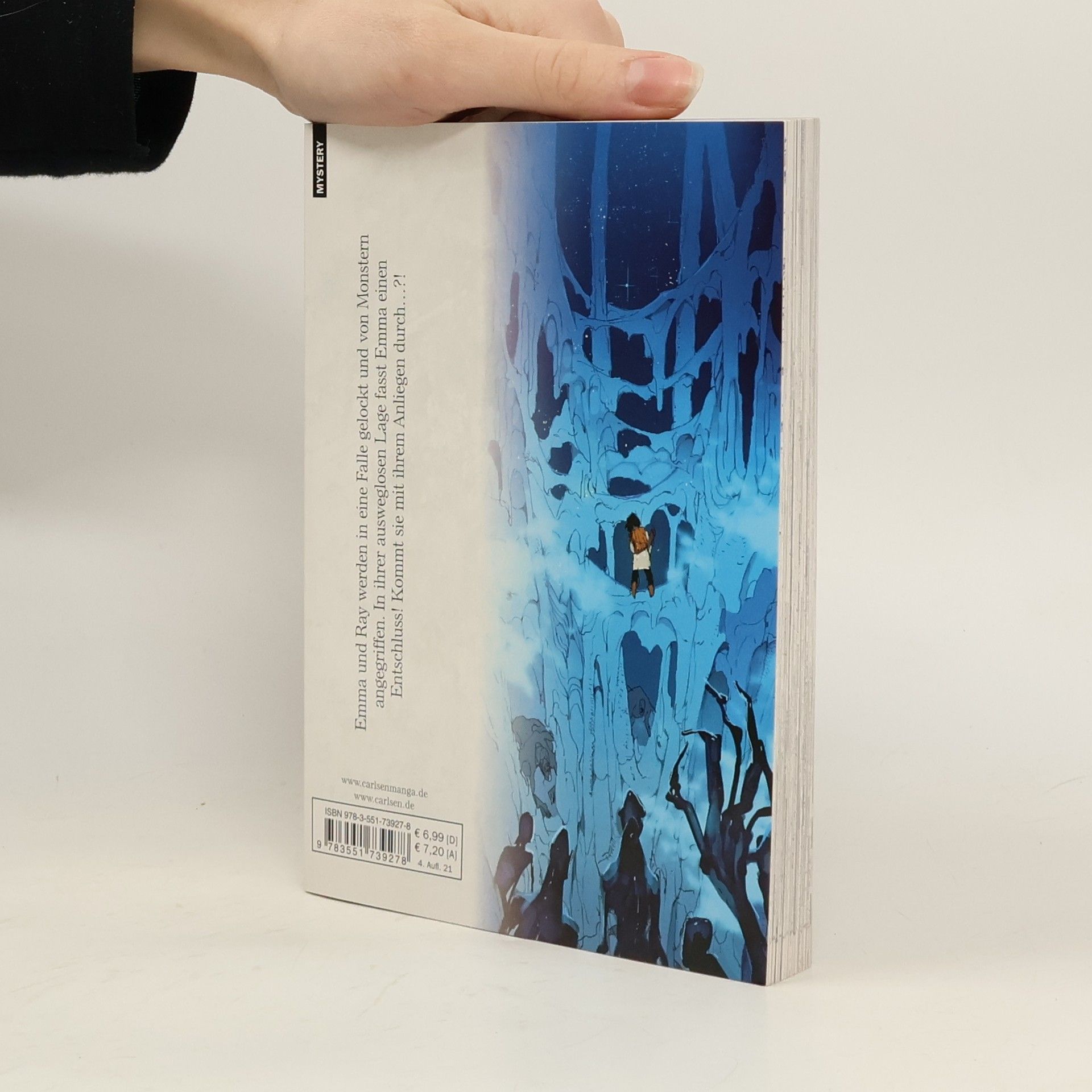 THE PROMISED NEVERLAND ist weltweit einer der erfolgreichsten Manga der letzten Jahre – eine Geschichte voller Lügen, Verrat und Verzweiflung, bei der alles infrage gestellt werden muss. Die Frau, die sie wie ihre Mutter lieben, ist nicht ihre wirkliche Mutter, und die Kinder, mit denen sie zusammenleben, sind nicht ihre Geschwister. Denn Emma, Norman und Ray wachsen wohlbehütet in einem kleinen Waisenhaus auf. Doch eines Tages endet ihr glücklicher Alltag abrupt, als sie die schockierende Wahrheit über ihr Zuhause erfahren. Welches Schicksal wird die Kinder erwarten…?! Das erwartet dich in diesem Band: Emma und Ray werden in eine Falle gelockt und von Monstern angegriffen. In ihrer ausweglosen Lage fasst Emma einen Entschluss! Kommt sie mit ihrem Anliegen durch…?! Unvergleichliche Spannung mit Gänsehaut-Faktor für Jungs, Mädchen und alle Geschlechter! Weitere Infos: - empfohlen ab 15 Jahren - mit 20 Bänden abgeschlossen - Anime-Stream bei Wakanim und Animax Plus - Anime-DVD/Blu-ray von Peppermint Anime - Kinofilm ab Dezember 2020 in Japan - Live-Action-Serie von Amazon geplant