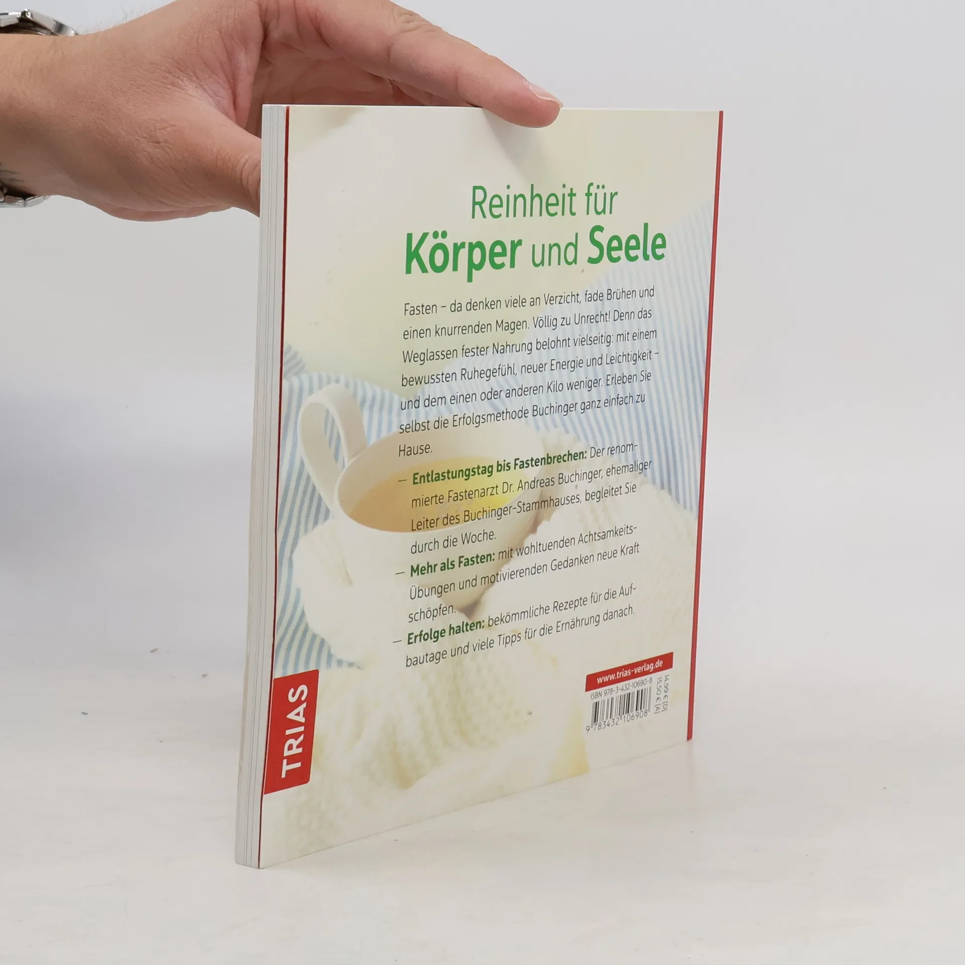 Reinheit für Körper und Seele. Fasten - da denken viele an Verzicht, fade Brühen und einen knurrenden Magen. Völlig zu Unrecht! Denn das Weglassen fester Nahrung belohnt vielseitig - mit einem bewussten Ruhegefühl, neuer Energie und Leichtigkeit - und dem einen oder anderen Kilo weniger. Erleben Sie selbst die Erfolgsmethode Buchinger ganz einfach zu Hause. - Entlastungstag bis Fastenbrechen: Der renommierte Fastenarzt Dr. Andreas Buchinger, Chefarzt am Buchinger Stammhaus, begleitet Sie durch die Woche. - Mehr als Fasten: Mit wohltuenden Achtsamkeits-Übungen und motivierenden Gedanken neue Kraft tanken. - Erfolge halten: bekömmliche Rezepte für die Aufbautage und viele Tipps für die Ernährung danach.