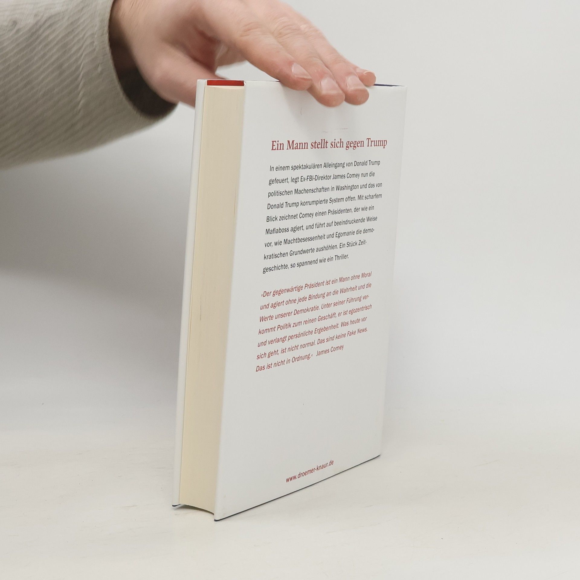 Die Erinnerungen von Ex-FBI-Chef James B. Comey sind aktuell, brisant und spannend wie ein Krimi. 2017 von Präsident Trump gefeuert, schreibt Comey einen fesselnden Insider-Bericht über politische Machenschaften und das von Donald Trump korrumpierte US-amerikanische System. Ein Sachbuch wie ein Kriminalroman der Extraklasse: James Comeys brisante Erinnerungen an die vergangenen 20 Jahre im Zentrum der Macht zeigen ihn als unbeugsamen Ermittler, der gegen die Mafia, gegen CIA-Folter und NSA-Überwachung, und zuletzt im Wahlkampf 2016 gegen Hillary Clintons Umgang mit dienstlichen Emails und Donald Trumps Russland-Verbindungen vorgegangen ist. Der Weg des parteilosen New Yorker Vorzeigejuristen gleicht einer politischen Achterbahnfahrt: stellvertretender Justizminister unter George W. Bush, zum FBI-Direktor ernannt von Barack Obama und gefeuert von Donald Trump wegen angeblicher Illoyalität. Sein Buch ist ein eindrückliches Lehrstück über den aufrechten Gang in einer verantwortungslosen Regierung.