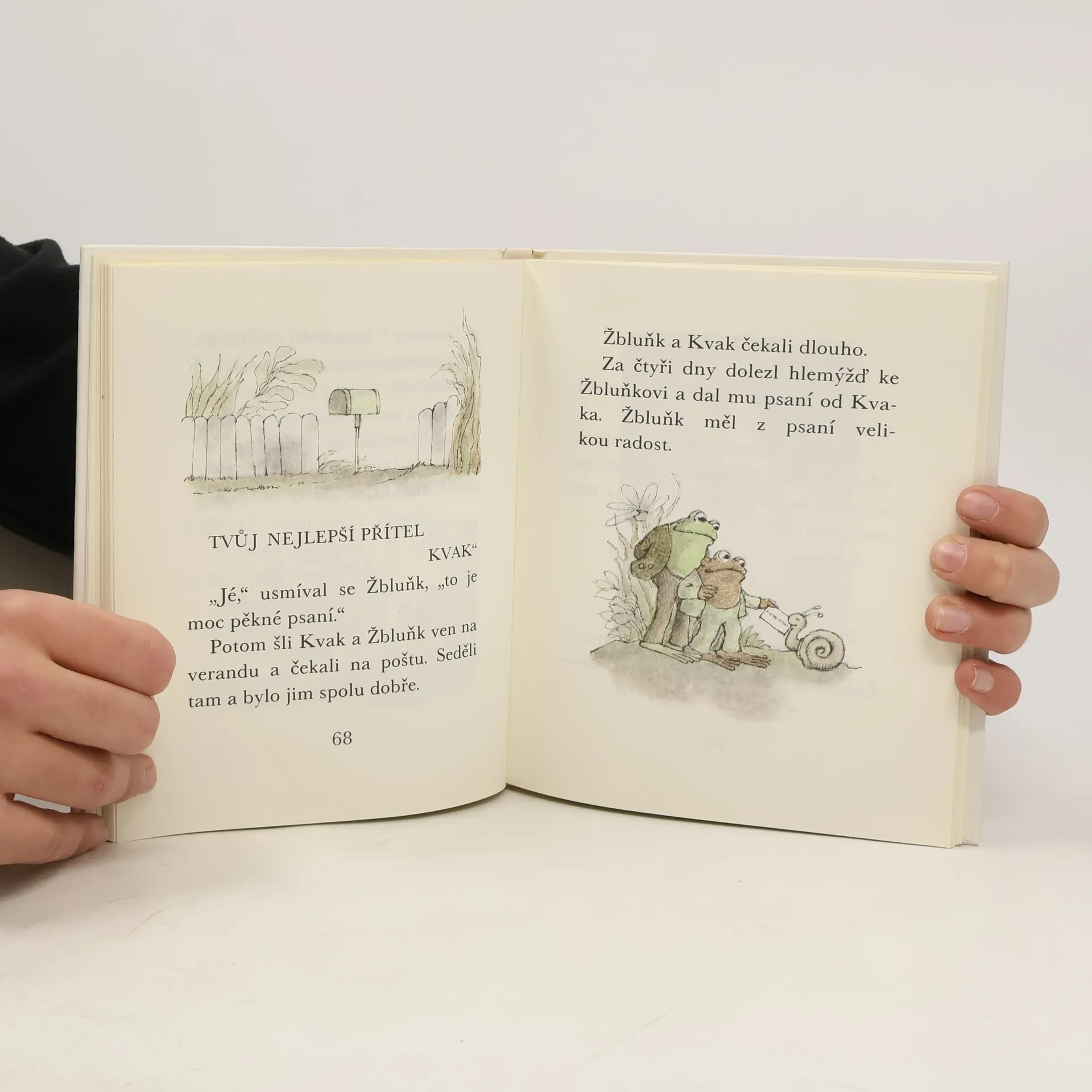 Úsměvné a hřejivé vyprávění o dvou kamarádech, zeleném žabákovi Kvakovi a hnědém ropušákovi Žbluňkovi potěšilo čtenáře nejen v zemi svého vzniku, ale i u nás (včetně dalších pokračování). Kdo by si tedy znovu rád nepřečetl o drobných příhodách a patáliích, které potkaly oba přátelé, když se na jaře probudili ze zimního spánku. Třeba právě o tom, jak hledali ztracený knoflík, jak se koupali v řece, jak pěstovali květiny či jak statečně utíkali před draky a obry. Prolínání fantazie s realitou umocňuje kouzlo této milé knížky, která je přímo stvořená pro začínající čtenáře.